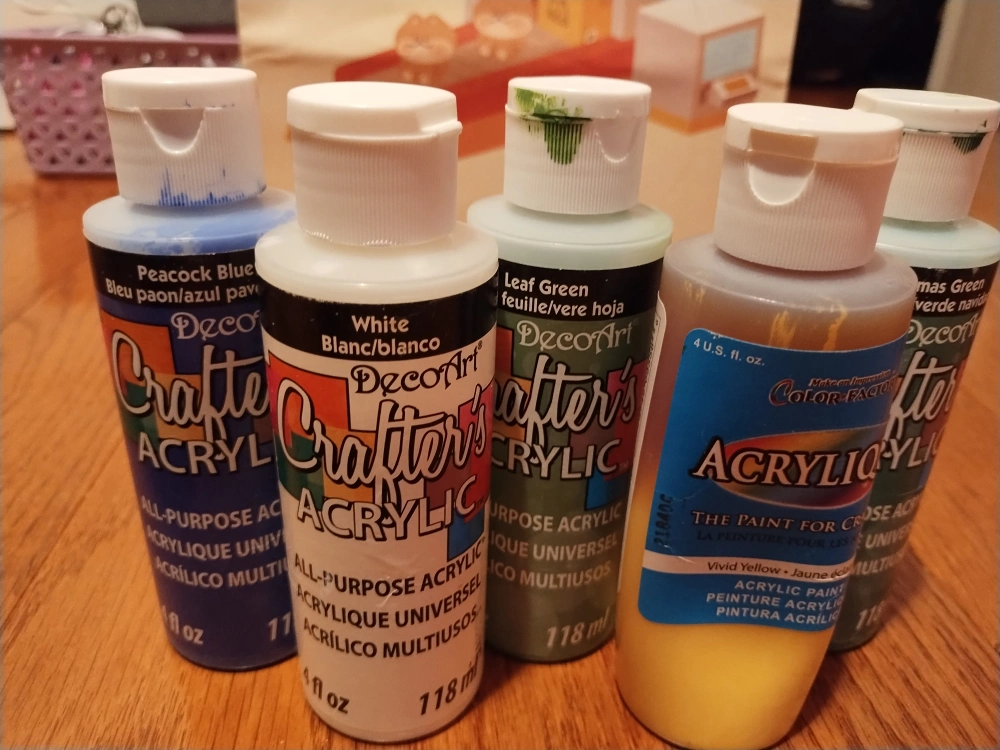 Assortment of DecoArt Crafter's Acrylic paint. Includes various colours. Some Partially used.