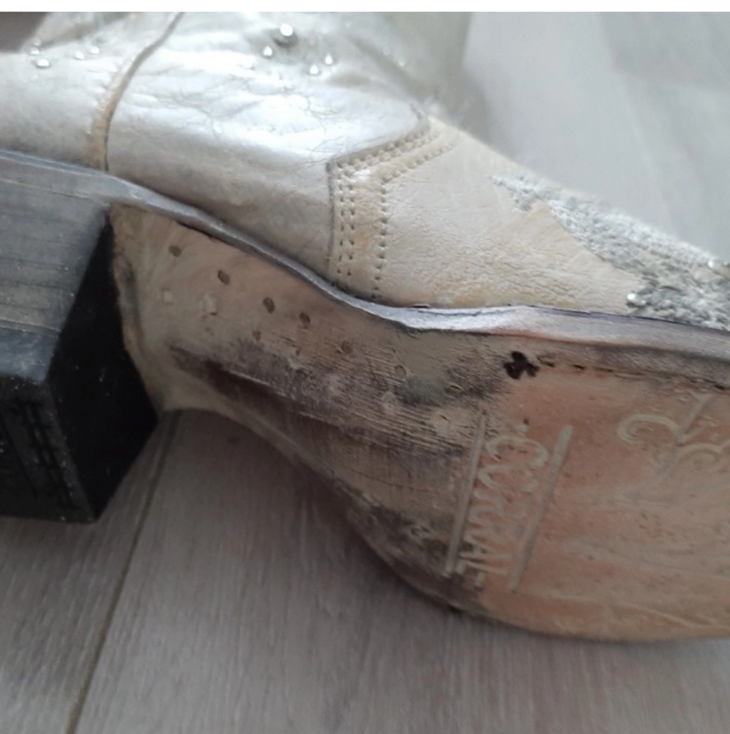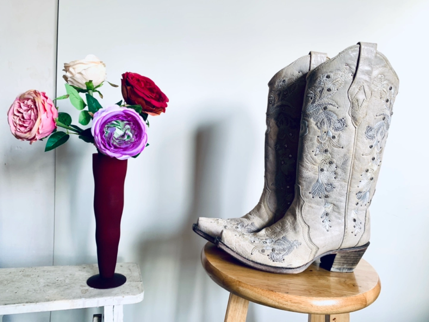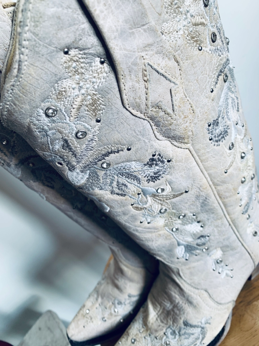 Unworn. Stunning white leather ‘Corral’ cowboy boots with floral embroidery and embedded crystals. True size 8.
