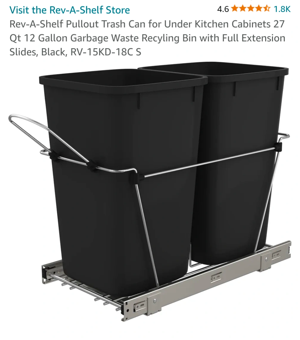 Rev-A-Shelf Dual Trash Can Pullout - 27 Quart x 2