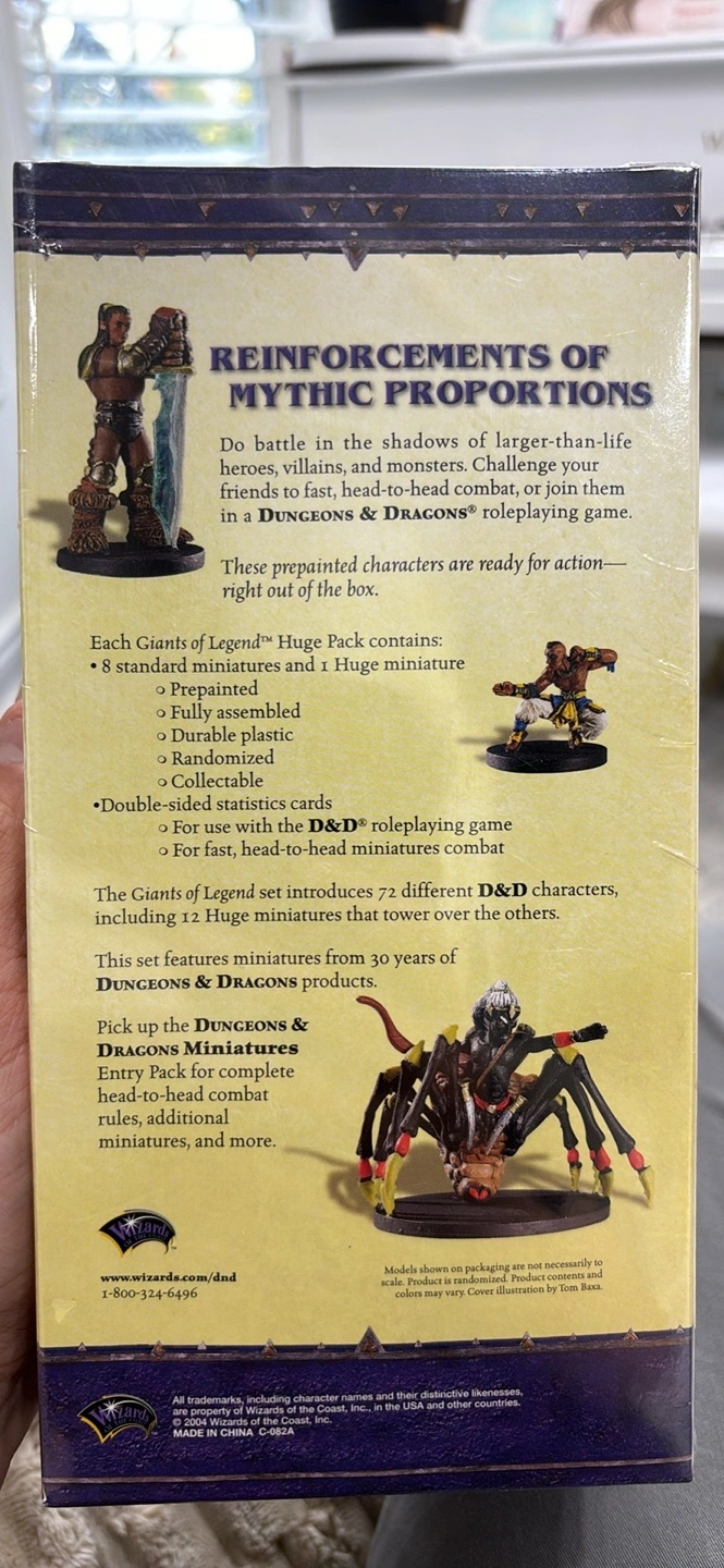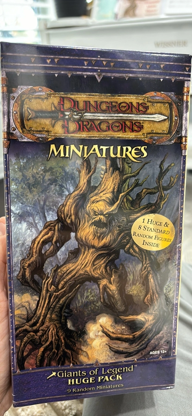 9 random vintage D&D miniatures. Includes one huge and eight standard miniatures. Painted and ready for action. Durable plastic. Includes stat cards. NEW (SW) Shrink Wrapped & Sealed
