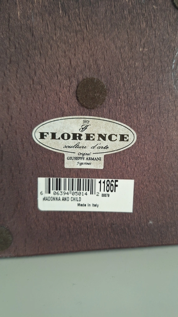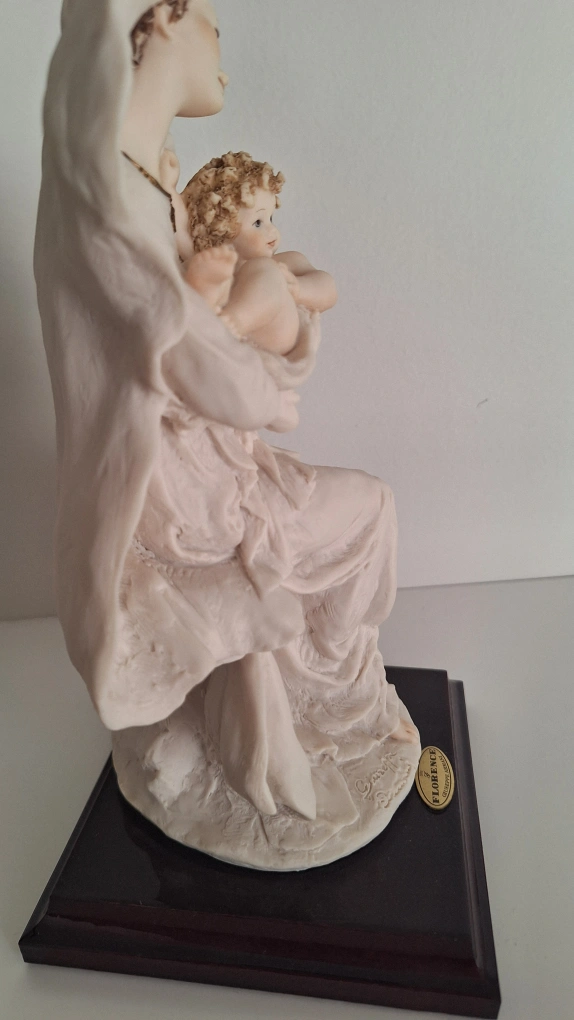 Giuseppe Armani Florence Figurine 'Madonna and Child', Figurines depicting a mother and child. Signed by Giuseppe Armani. Comes on a wood base. Made in Italy
