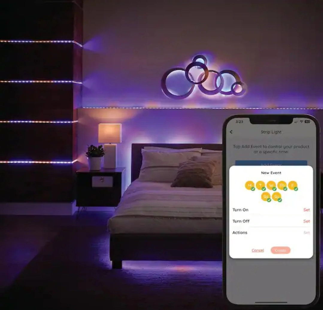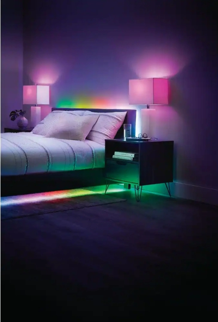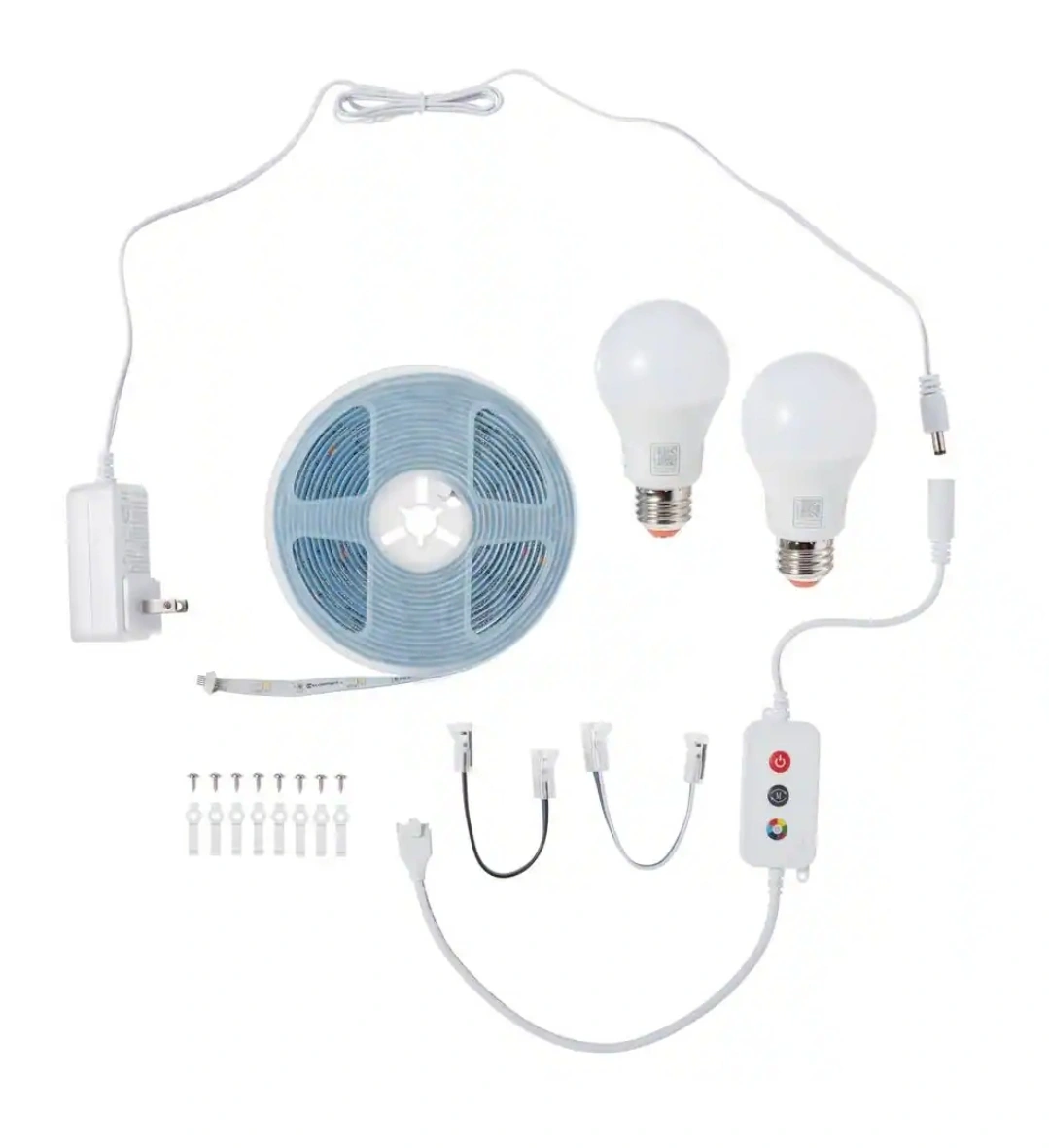 Includes a smart RGBWIC strip light and two RGBW smart bulbs. Works with Amazon Alexa and Google Assistant. Full color spectrum, customizable schedules, and dimmable.