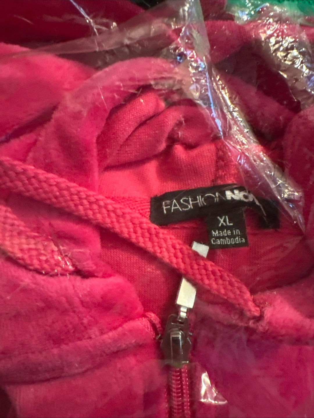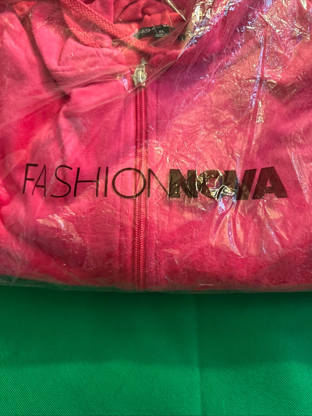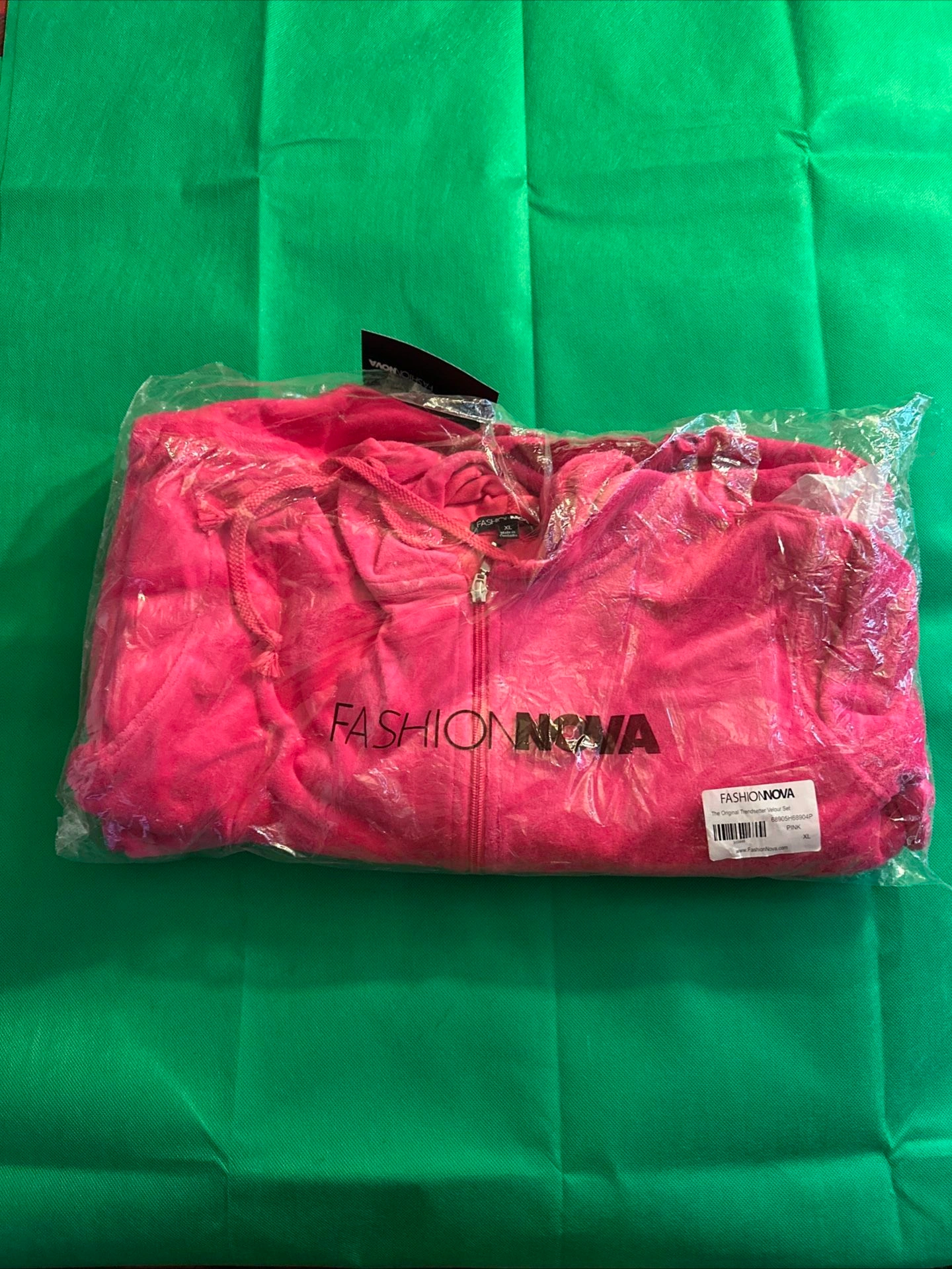 This Fashion Nova velour track suit set in hot pink, size XL, is stylish and comfortable. It features a velour fabric for a touch of luxury. The vibrant pink color and trendy design make it a standout choice. The regular fit is comfortable and flattering.