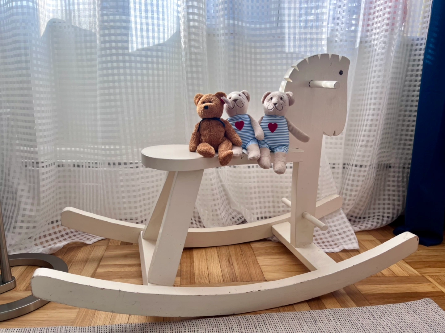 White wooden rocking horse. Great condition. Hand made in off withe colour.