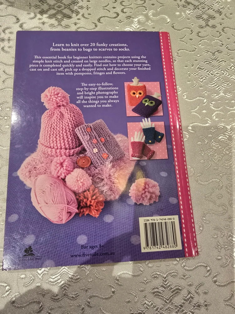 Learn to knit over 20 funky creations, from beanies to bags to scarves to socks. This essential book for beginner knitters contains projects using the simple knit stitch and created on large needles, so that each stunning piece can be completed quickly. Learn how to cast on, cast off, pick up a dropped stitch and decorate your finished item with pompoms, fringes and flowers.