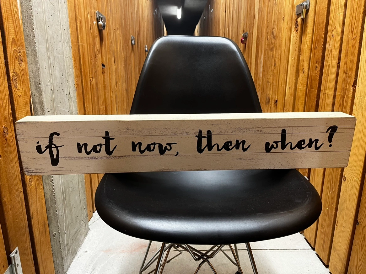 Urban Barn decorative wooden sign with the quote "If not now, then when?" in black lettering ☺️