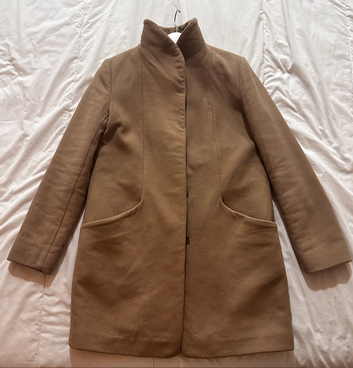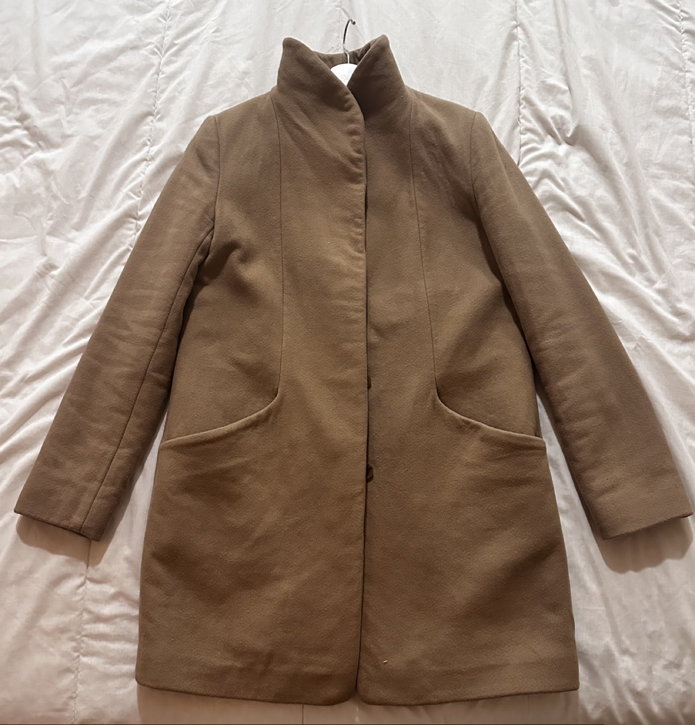 Streamlined Italian soft wool-cashmere coat. Size M in Nomad Taupe