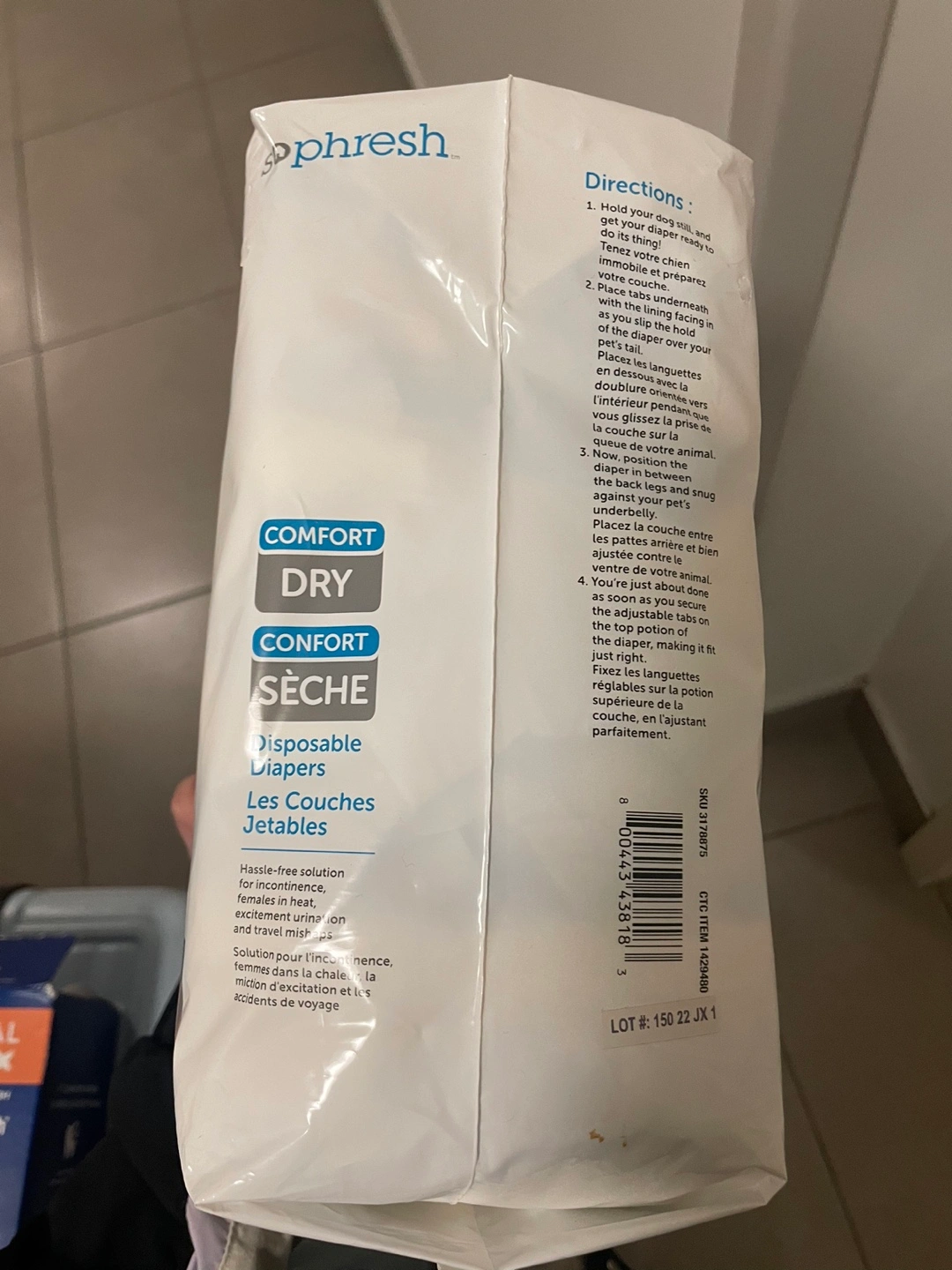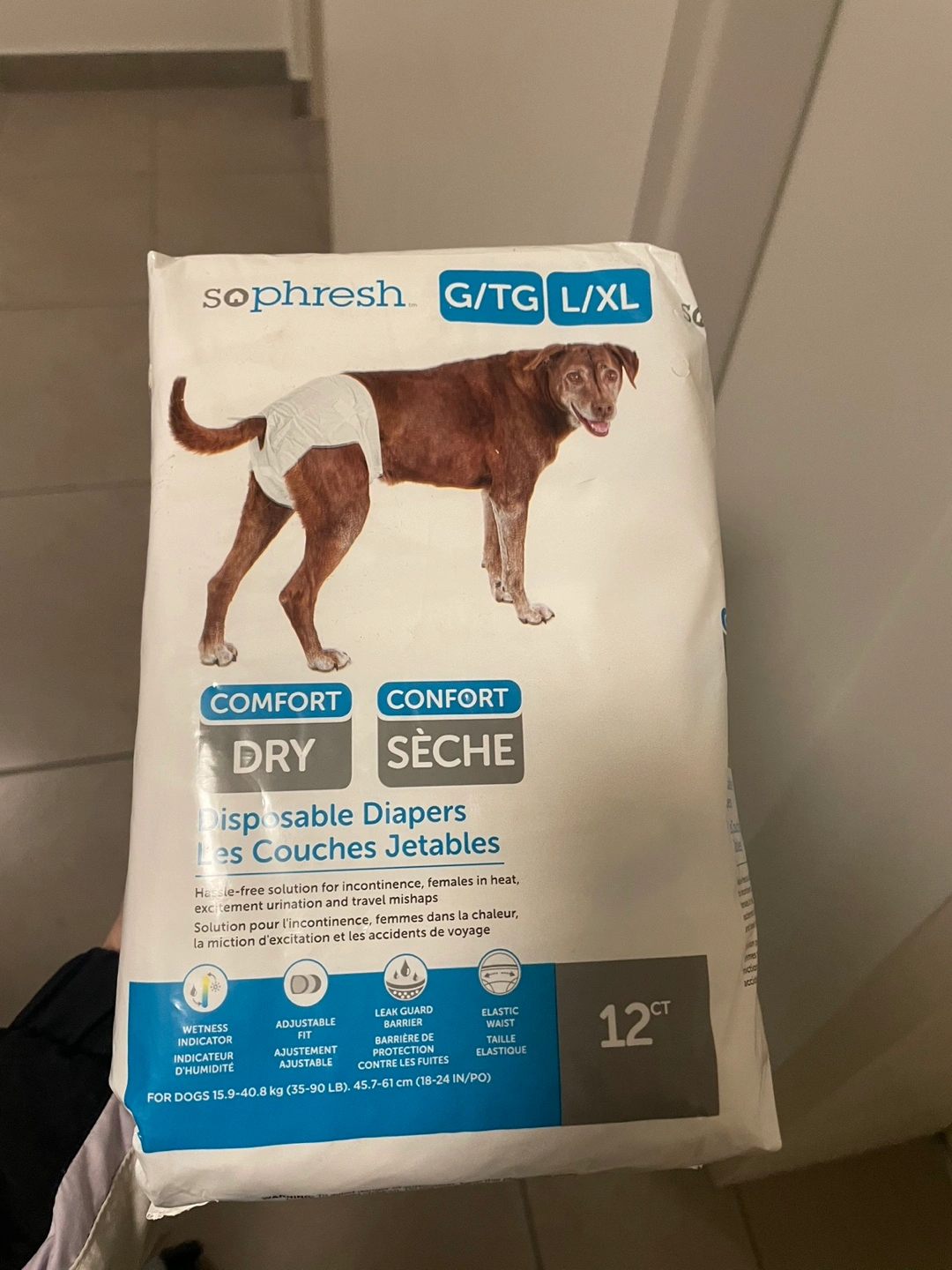 Sophresh Dog Diapers - Size L/XL - 12 Count