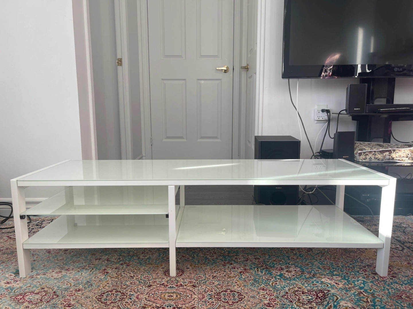 Buy & SellWhite Glass TV StandWhite Glass TV Stand$55White TV stand with glass top and two lower shelves. Metal frame. Price: 55$ConditionLike newDimensionsTV Stand 48 x 16 (122 cm x 40 cm)WHERE TO MEETFinchView MapSELLERverifiedMaeFinch985 reviews1 chats·1 favorites·39 viewsSEND CHAT TO SELLERHi Mae! I’m interested in your listing.Hi Mae! I’m interested in your listing.Get the Karrot app to chatSign In to chat