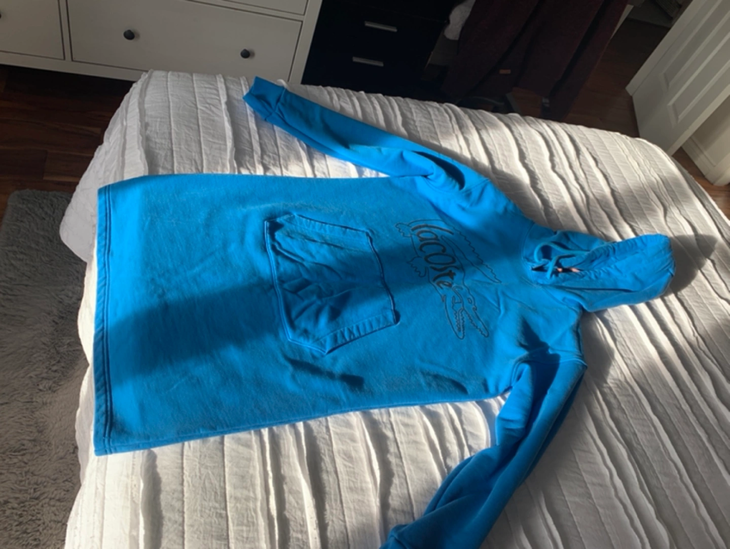 Blue Lacoste hoodie dress. Size M. Has a kangaroo pocket.