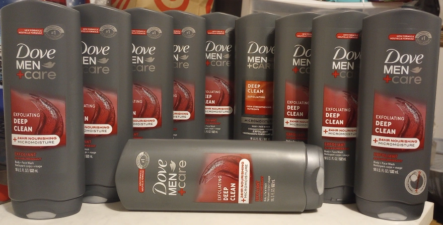 996Selling a bundle of 8 bottles of Dove Men's Deep Clean Body + Face Wash Sz. 18 fl. oz (532 mL) bottles Qty. 8 bottles Type: Exfoliating Body and Face cleanser Brand New *I also have regular Nivea Men Body Wash, 4 for $14 or 10 for $30 #Dove #bodywash Only available for pickup **Check out my other listings and build a large bundle for delivery; minimum for delivery is $70