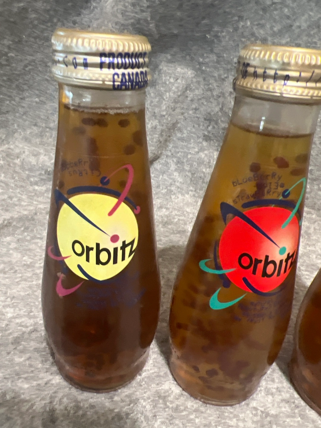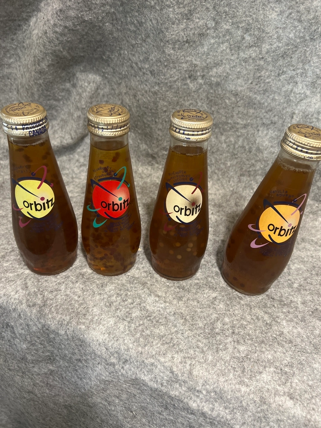 A selection of Orbitz bottled drinks, Not drinkable . Various flavours are available, all bottled in glass. Enjoy for collecting