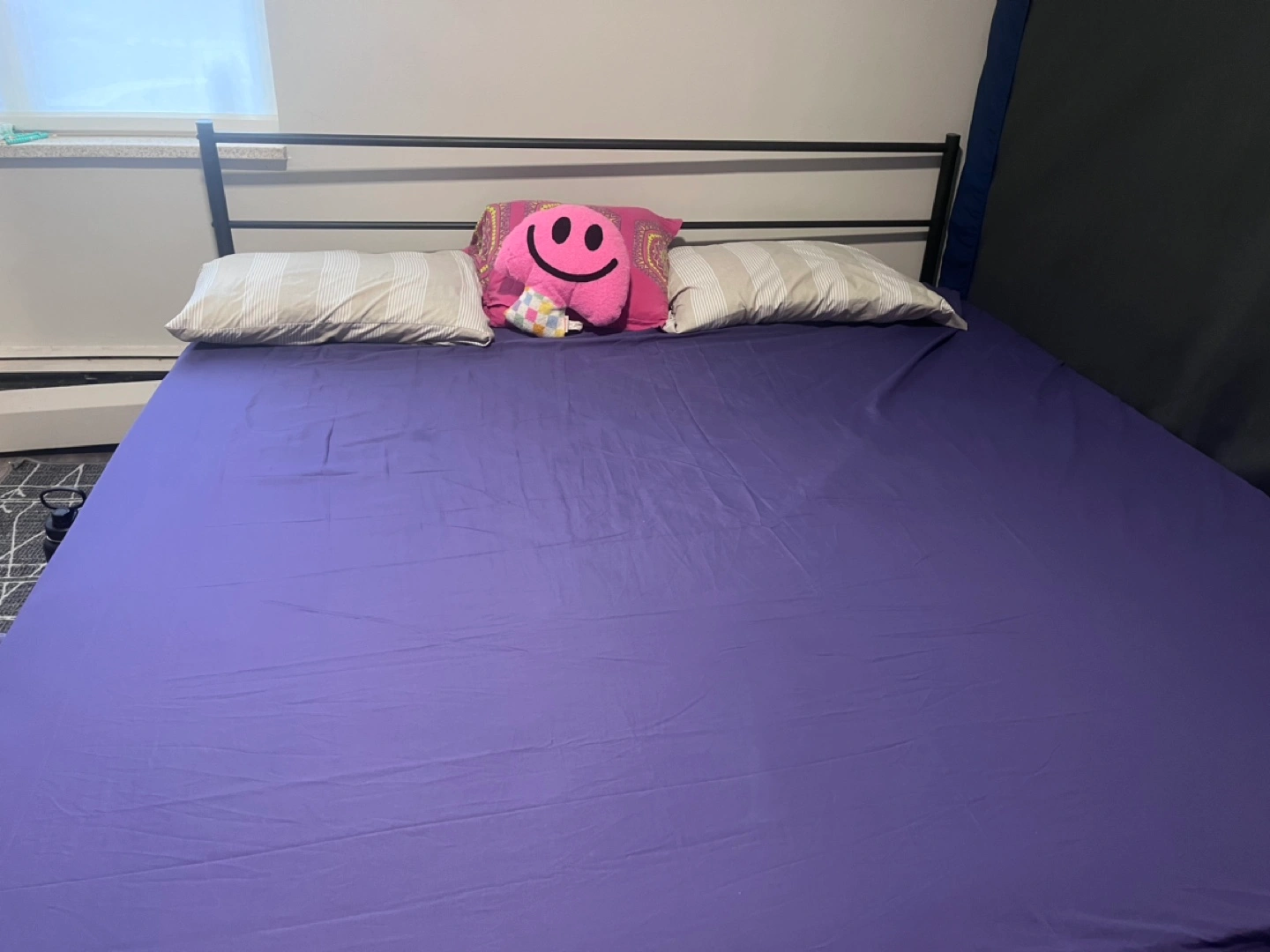 Black Metal KING frame bed. With headboard and foot board. Not even used for 1 year. Selling as moving. With firm king mattress. No Box Spring Needed, Fade Resistant, Squeak Resistant