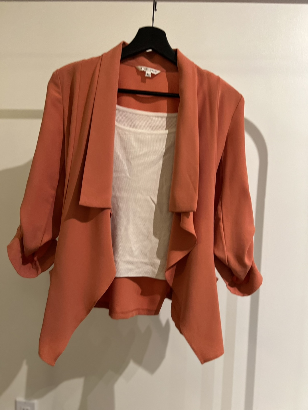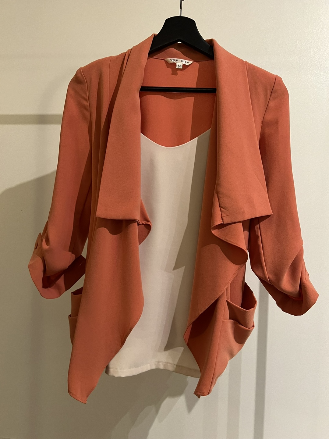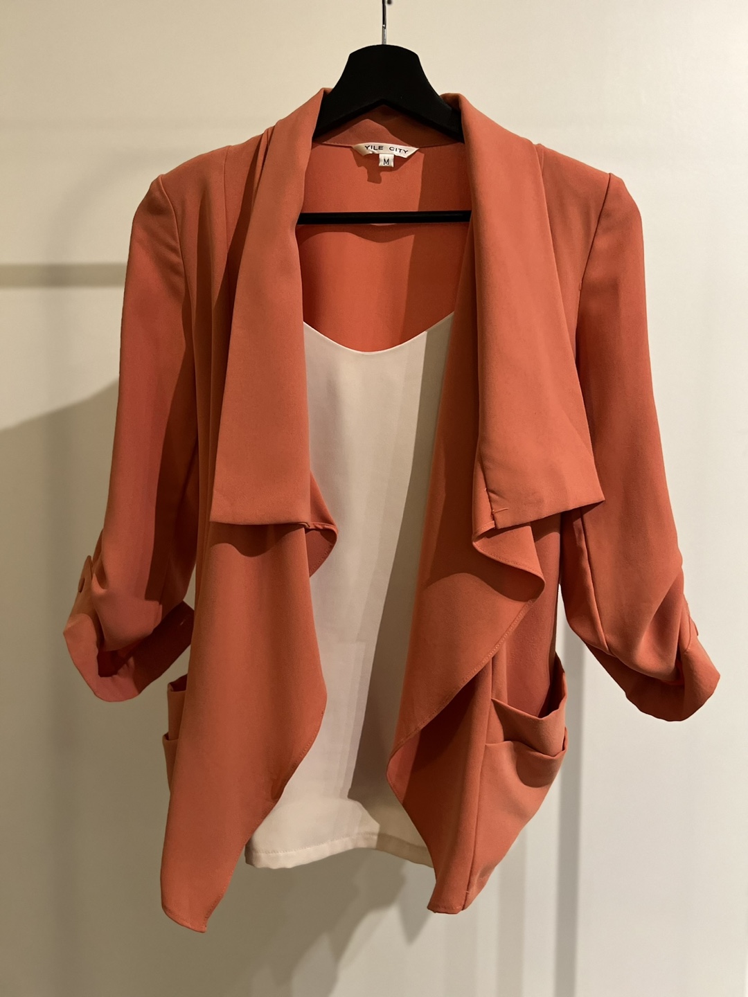 1 / 41 / 4Buy & SellCoral Blazer Korean Fashion Size MCoral Blazer Korean Fashion Size M$9Coral blazer with pockets. Sleeves are 3/4 length. Size M. Like new.SizeMWHERE TO MEETNorth York CentreView MapSELLERSharonWillowdale595 reviews1 chats·0 favorites·40 viewsSEND CHAT TO SELLERHi Sharon! I’m interested in your listing.Hi Sharon! I’m interested in your listing.Get the Karrot app to chatSign In to chat