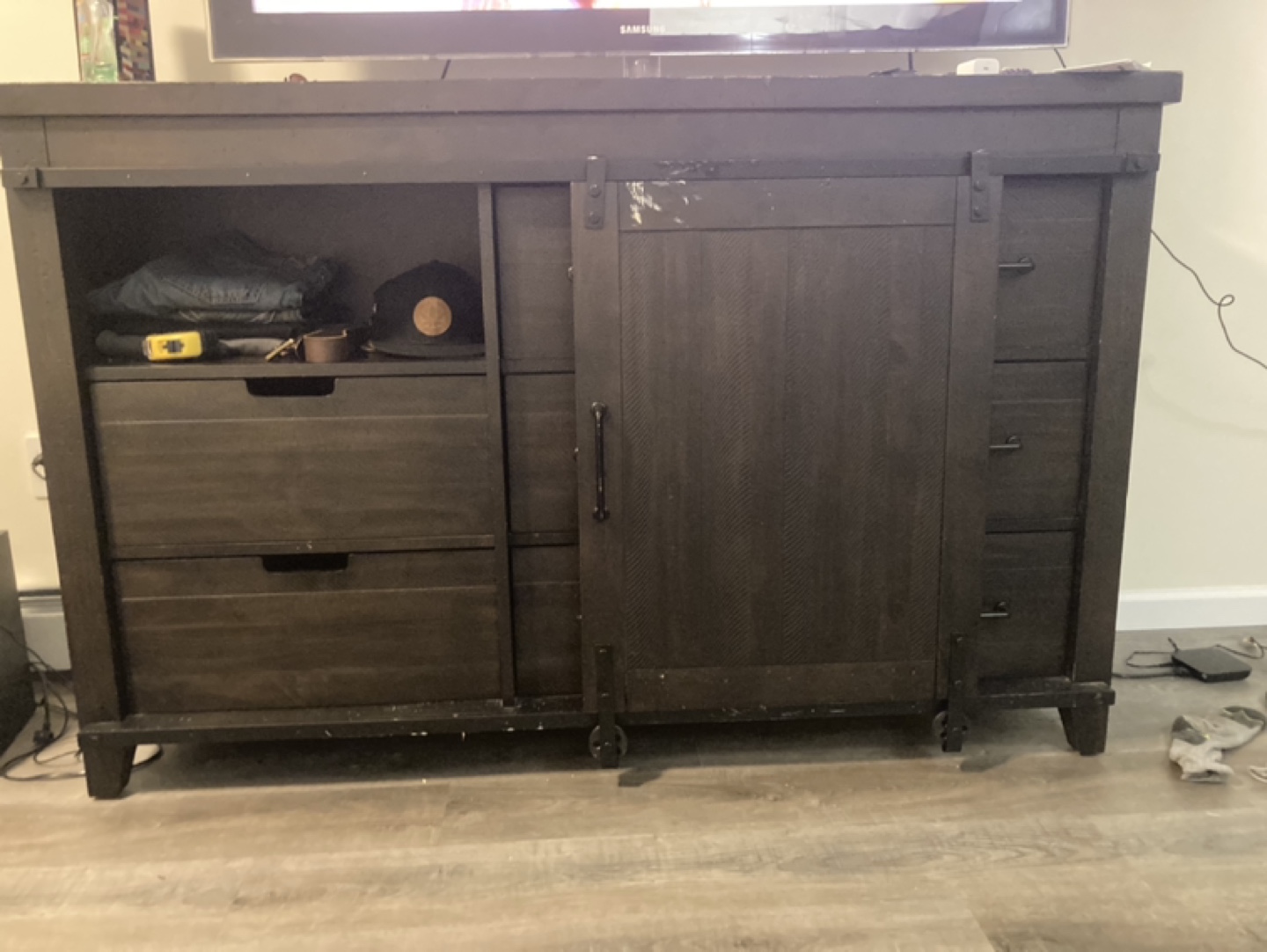 Rustic Farmhouse Style Dresser with Sliding Barn Door