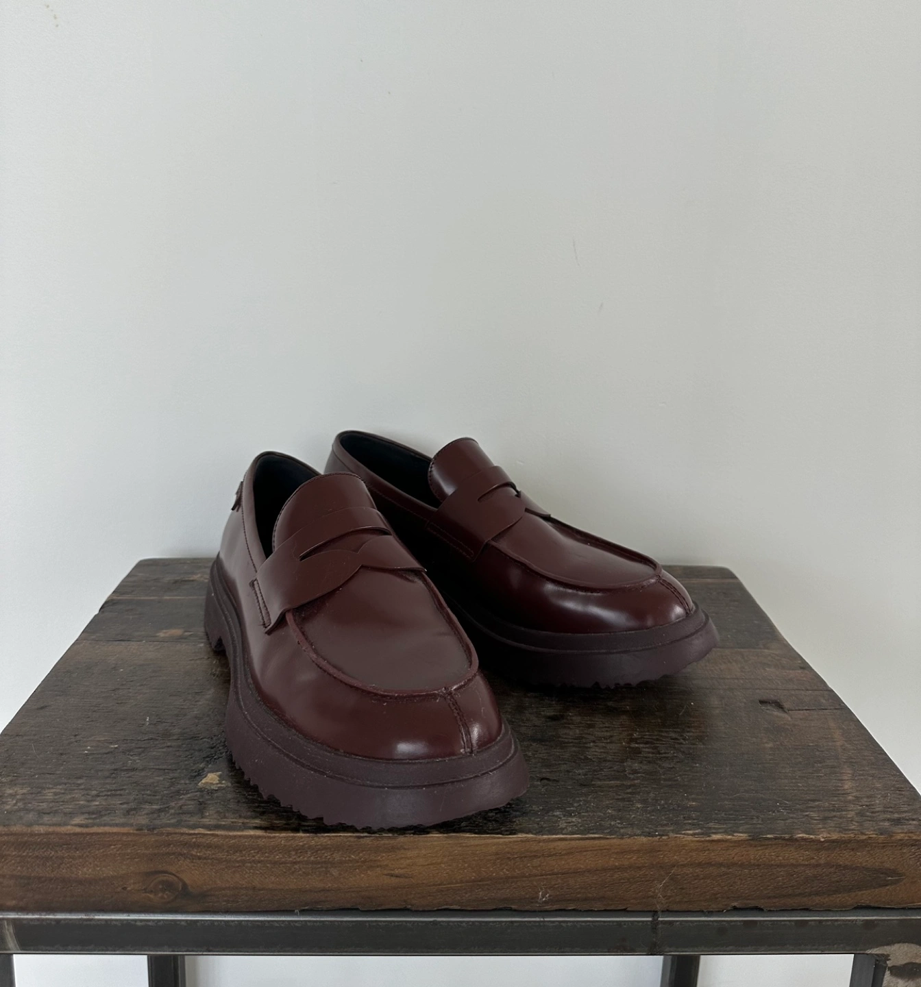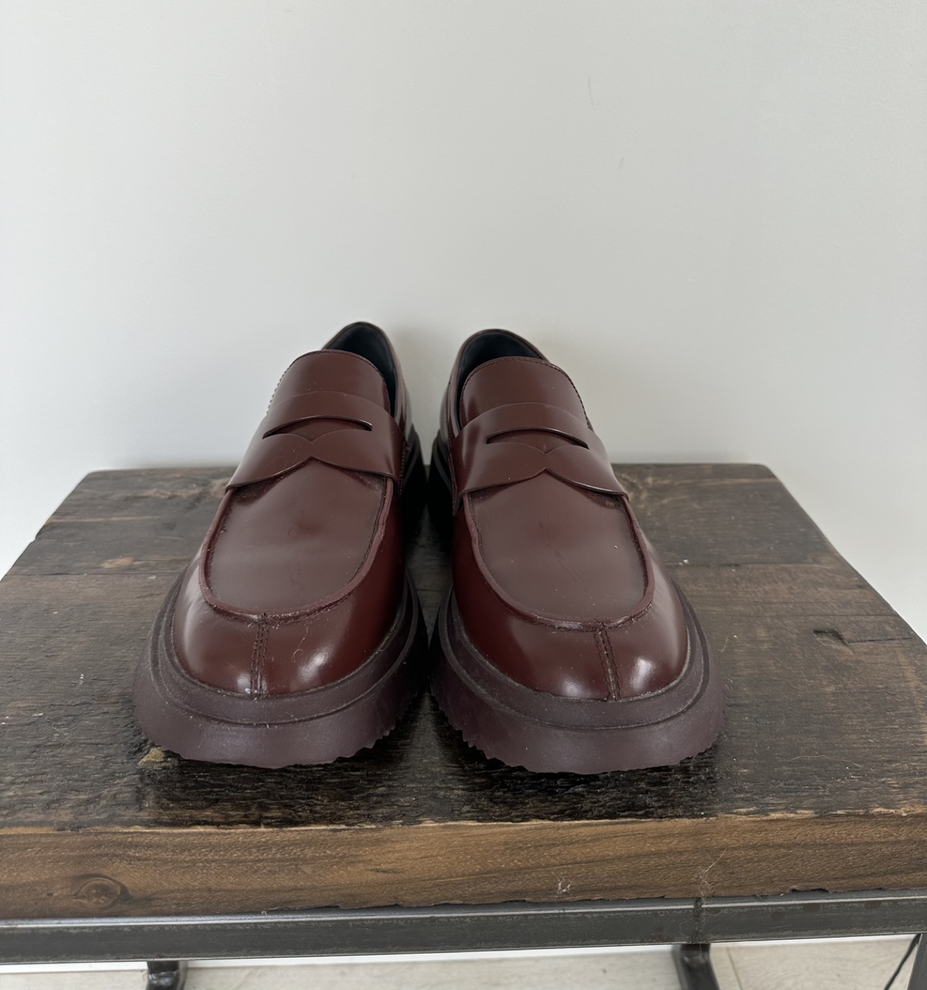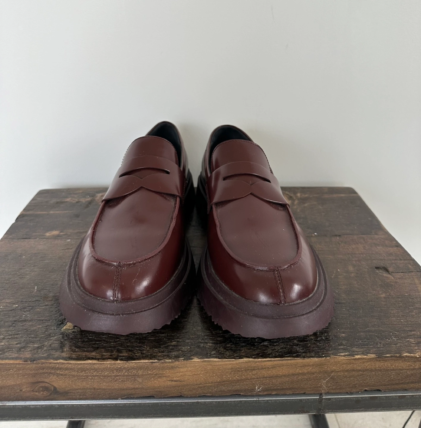 Burgundy leather loafers with a chunky rubber sole. Size 43. Fits true to size.
