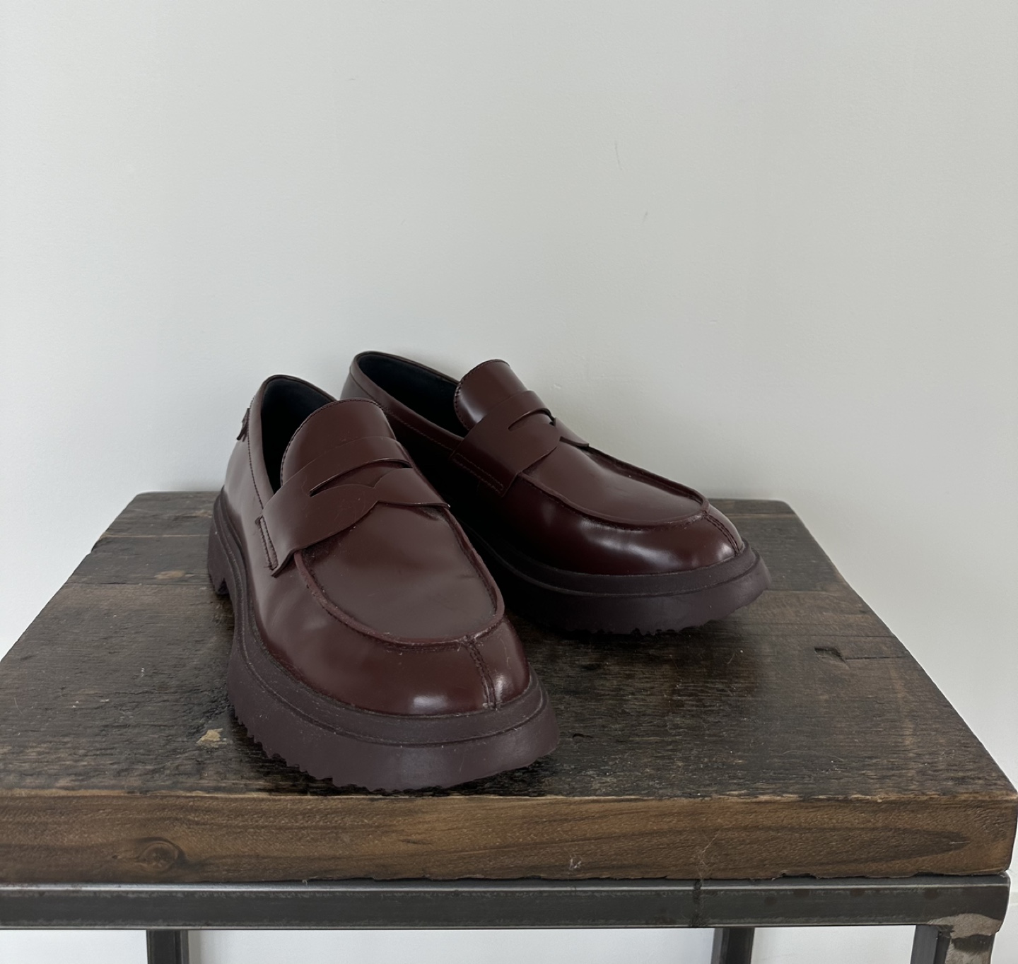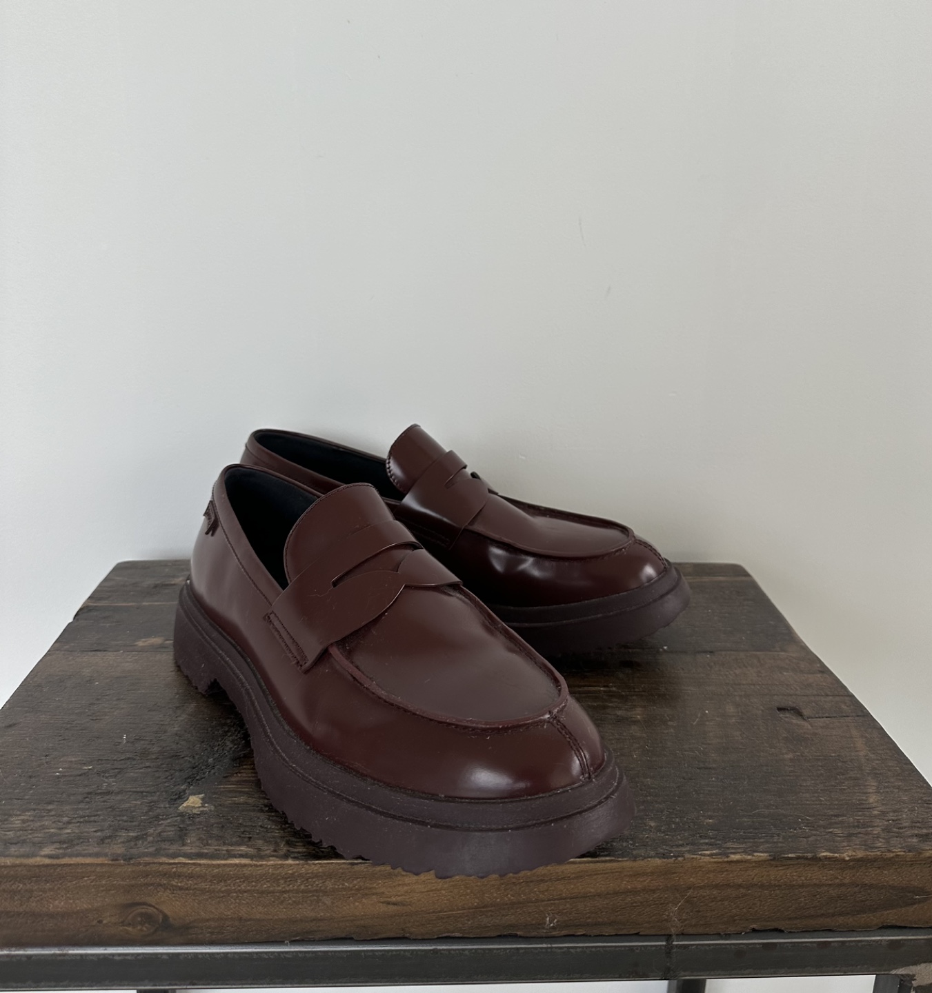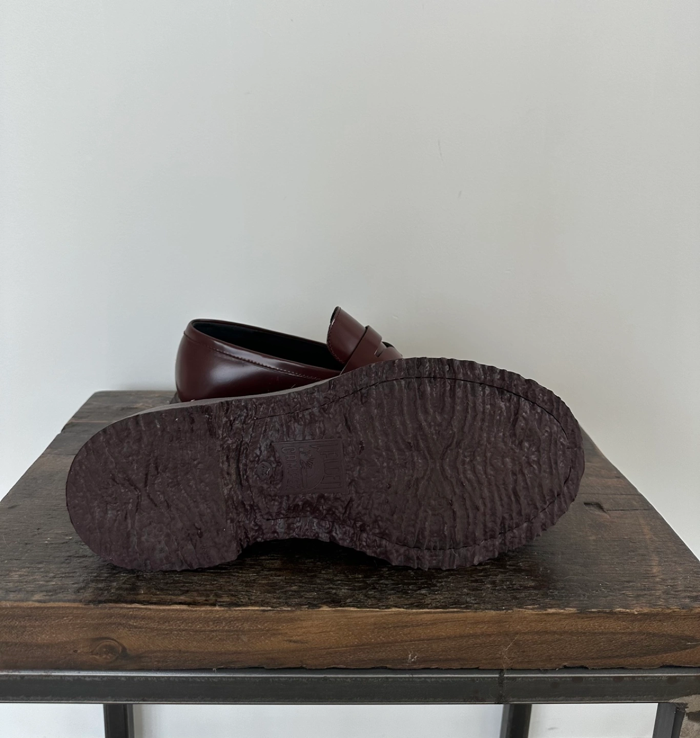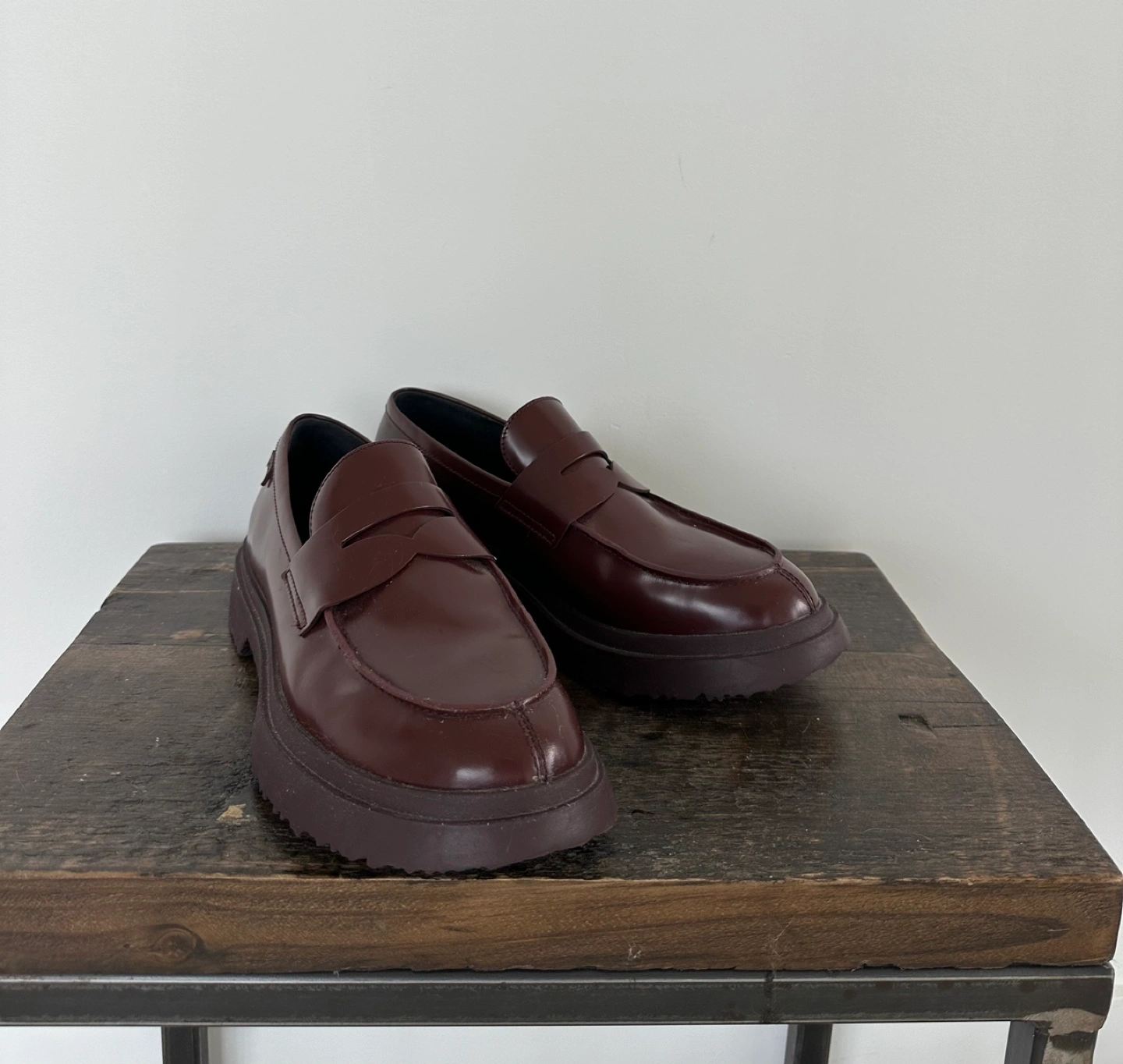 Burgundy leather loafers with a chunky rubber sole. Size 43. Fits true to size.