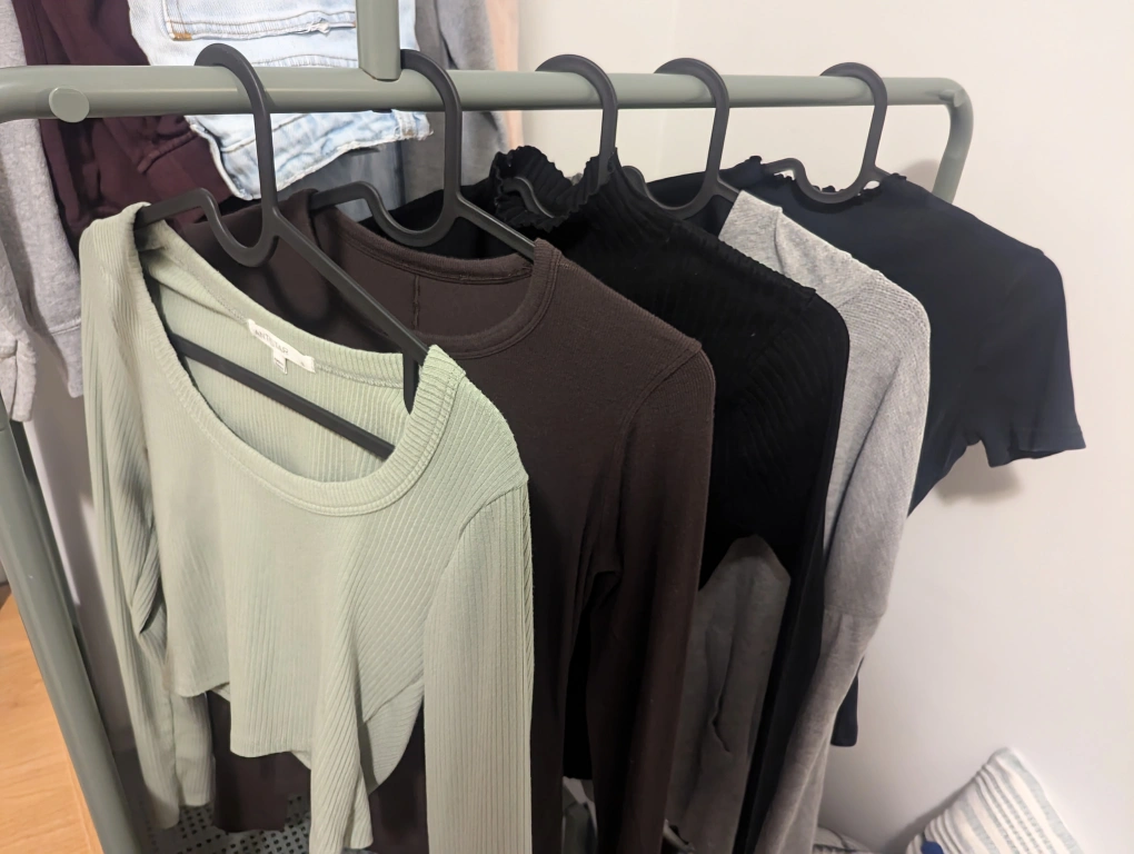 clothing lot includes long sleeves, short sleeves and hoodie/waffle long sleeves.