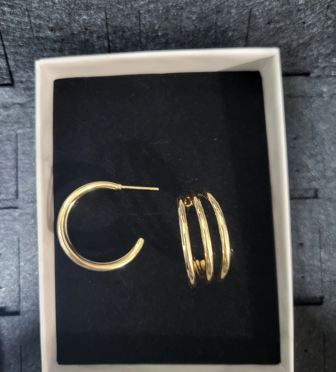 Women's Triple Tube Gold Hoop Push Back Earings