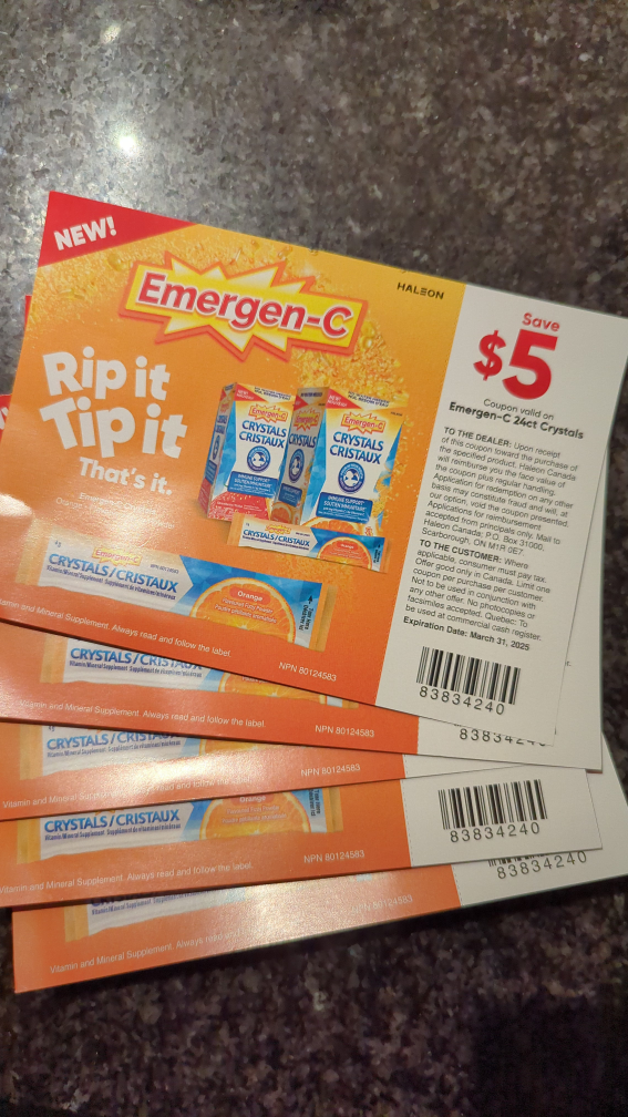 1 / 11 / 1Buy & Sell5x Emergen-C Crystals Coupons5x Emergen-C Crystals CouponsFreeFive coupons for $5 off Emergen-C Crystals. Expiry date March 31, 2025. Meet up at Eaton CentreWHERE TO MEETCF Toronto Eaton CentreView MapSELLERJoeyOld Toronto72288 reviews1 chatsΒ·0 favoritesΒ·42 viewsSEND CHAT TO SELLERHi Joey! Iβm interested in your listing.Hi Joey! Iβm interested in your listing.Get the Karrot app to chatSign In to chat