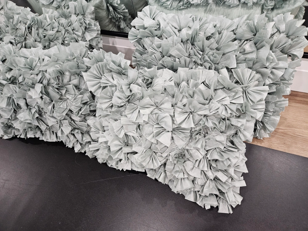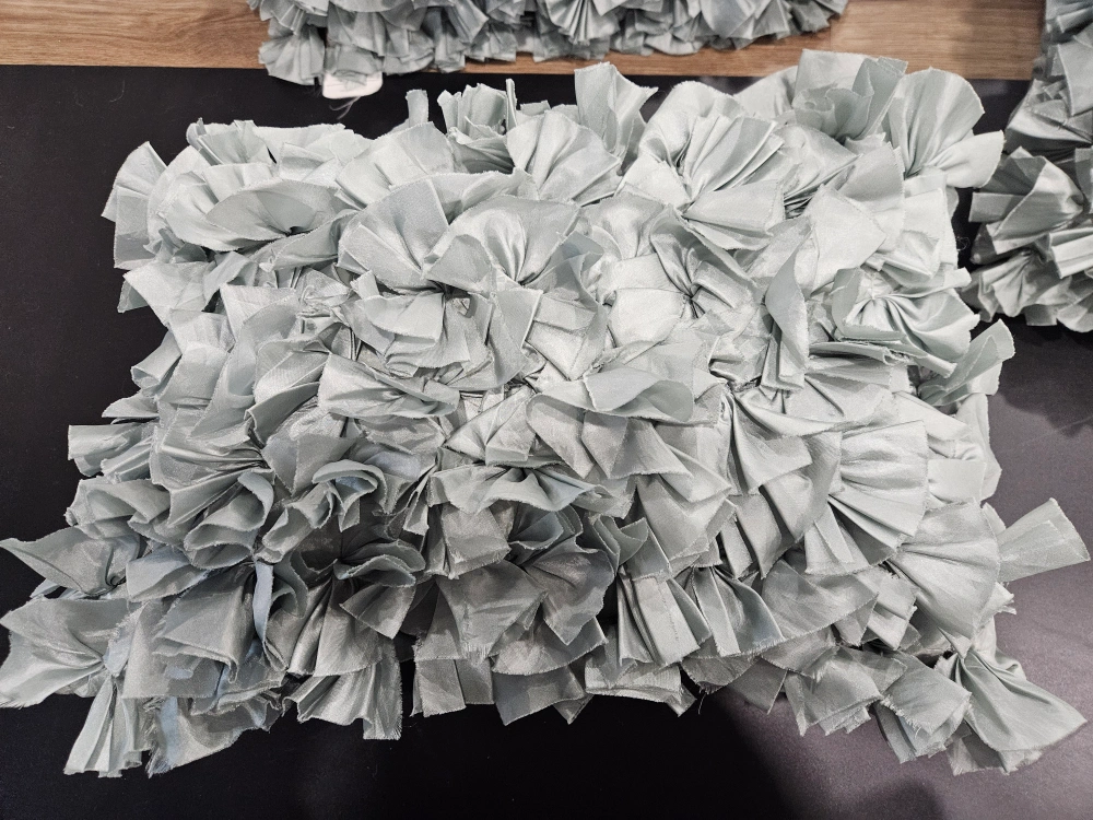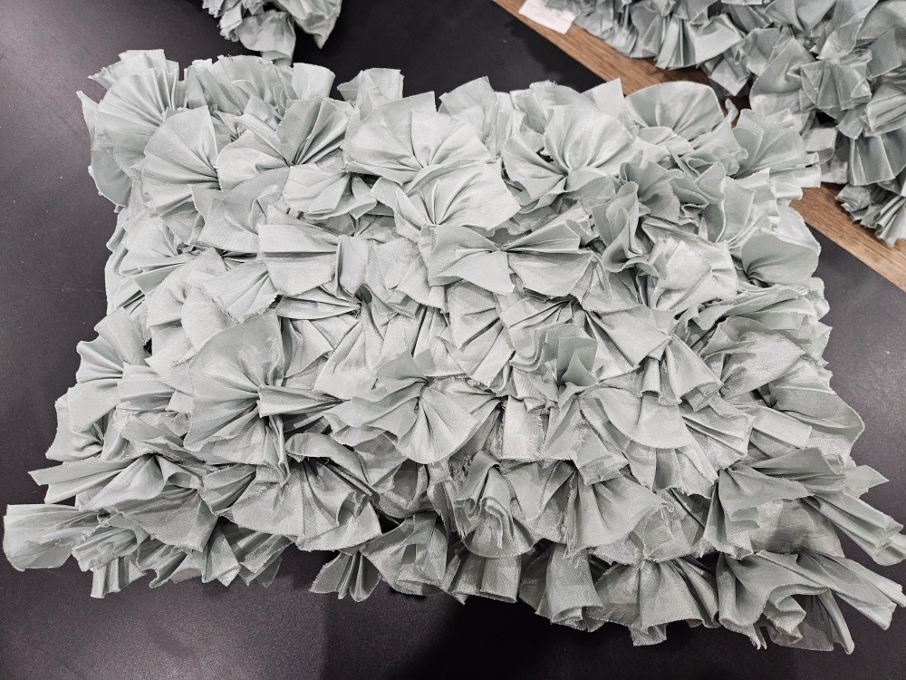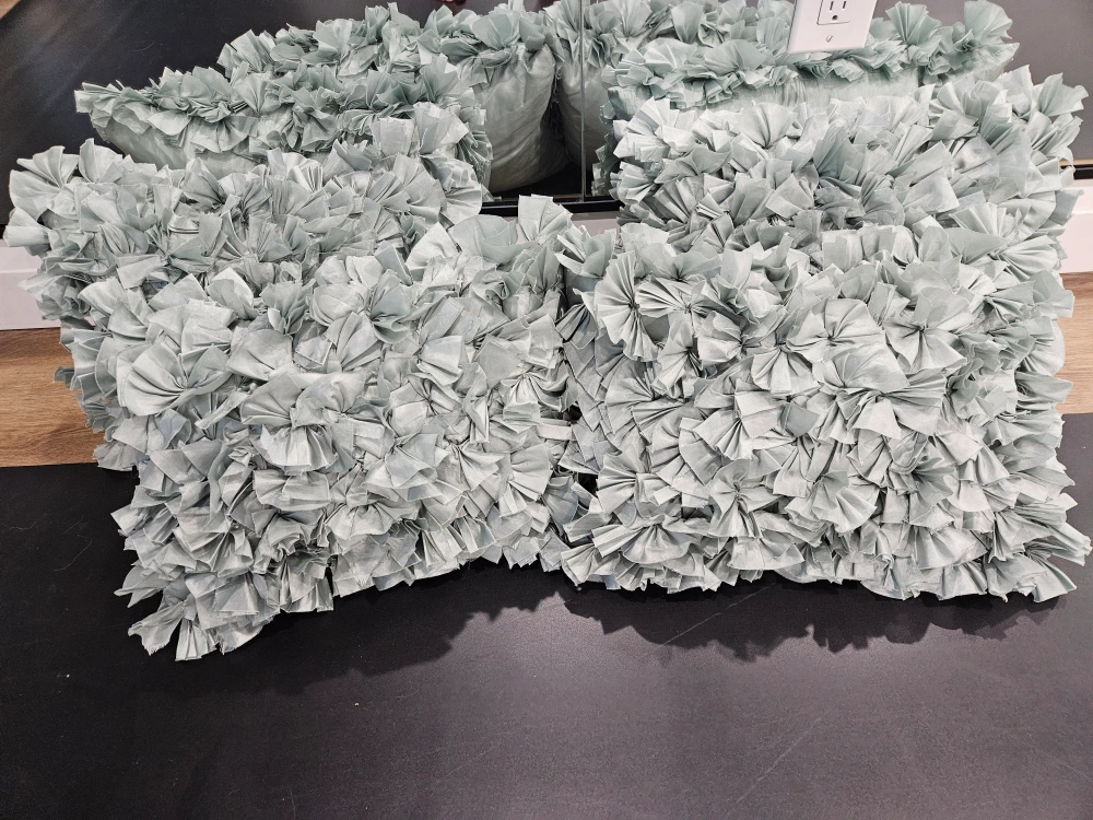 97Set of 3 decorative pillows. with a ruffled fabric design. 12 x20 inch