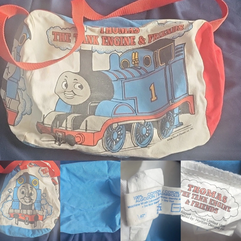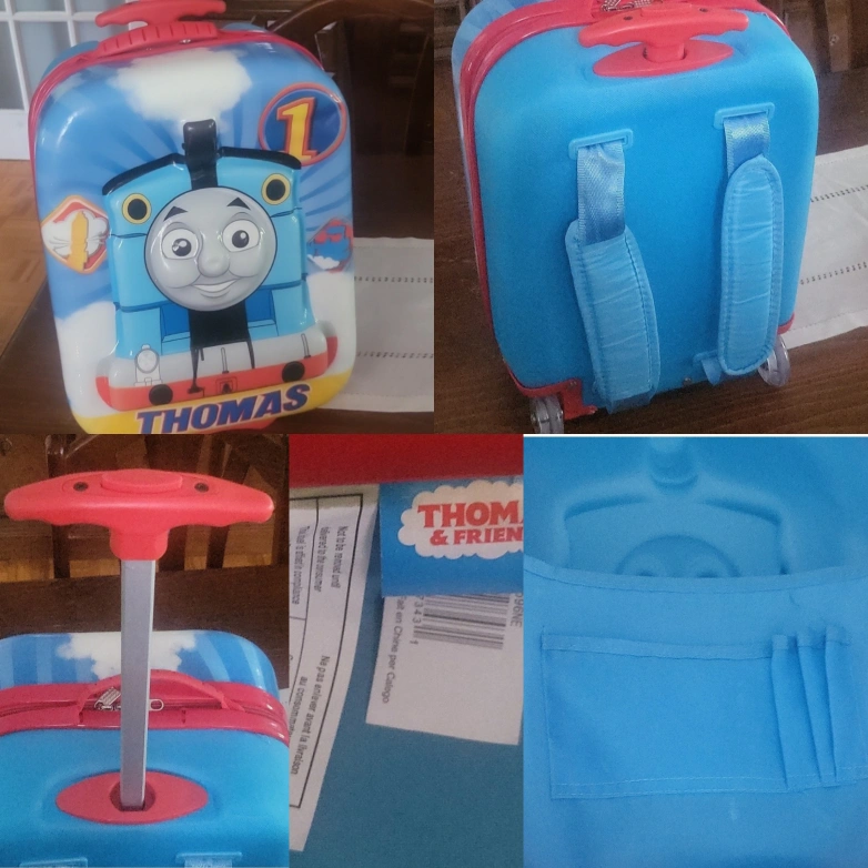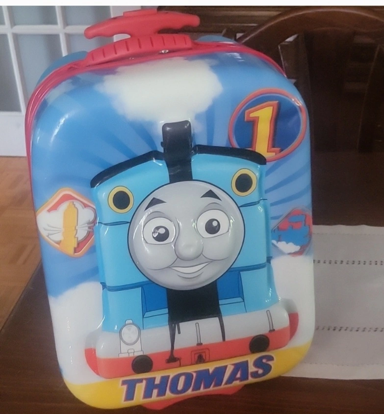 Thomas the Tank Engine kids suitcase. Perfect for travelling. Has a handle and wheels. Vintage Thomas cotton weekender bag..