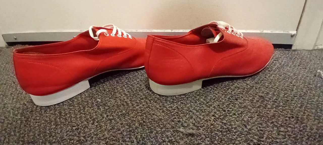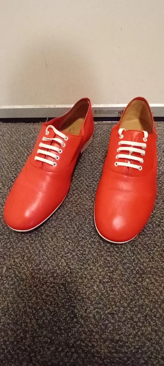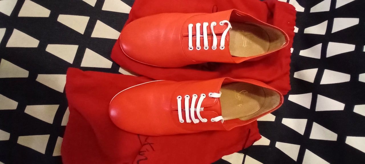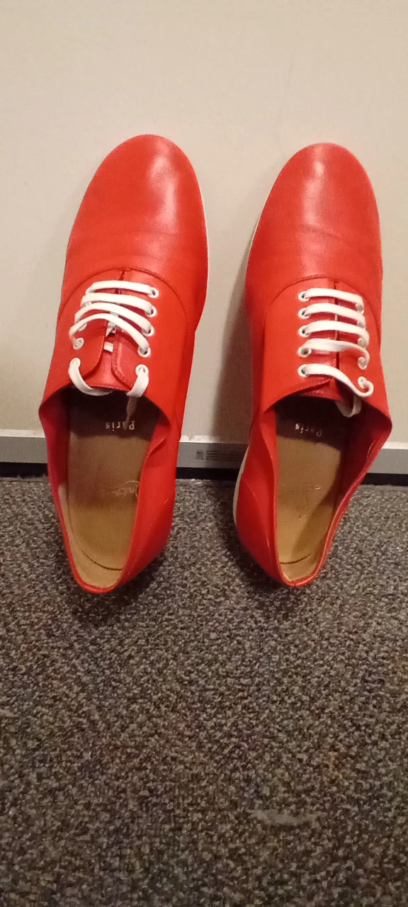 Red leather shoes with white laces. Come with original box and dust bags.