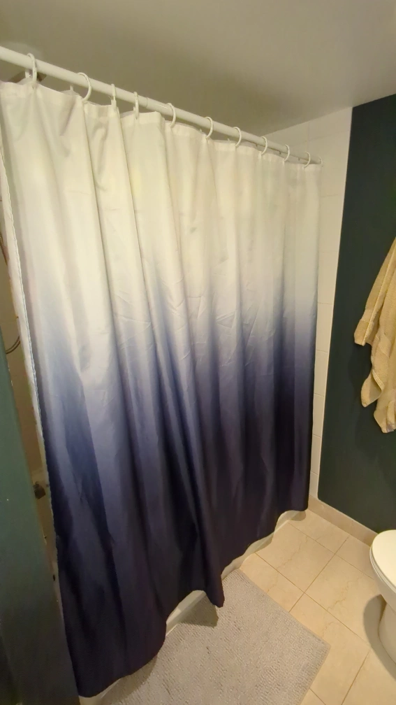 White and blue / navy ombre shower curtain. Clean, like new, and just machine washed it. Has 12 holes at the top. Excludes the rings for hanging.