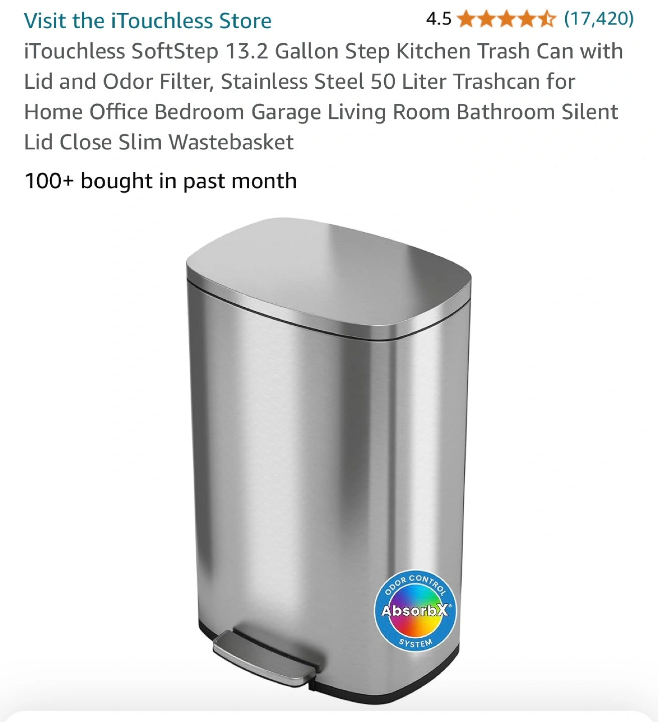 iTouchless SoftStep 13.2 Gallon Step Trash Can for sale.