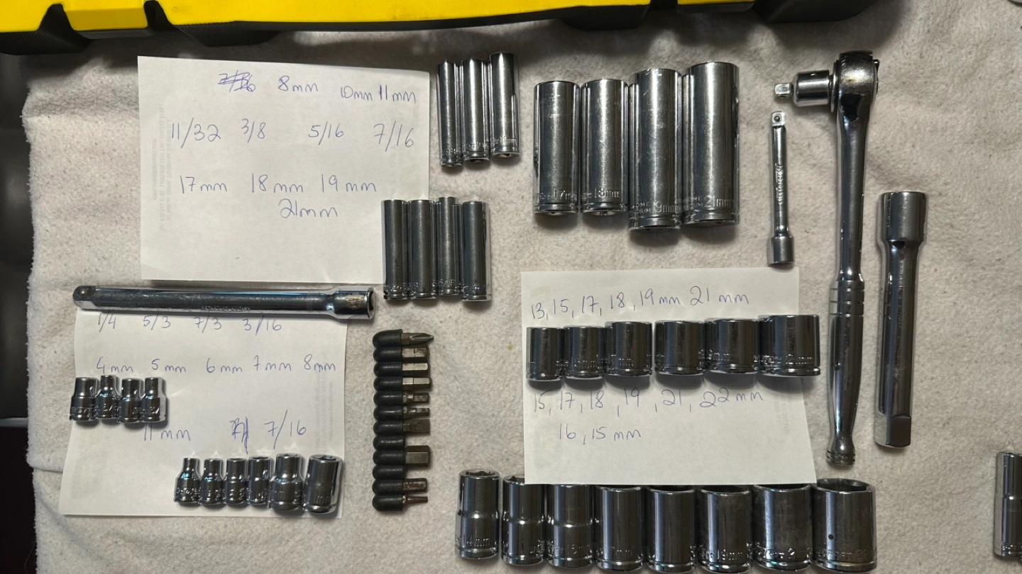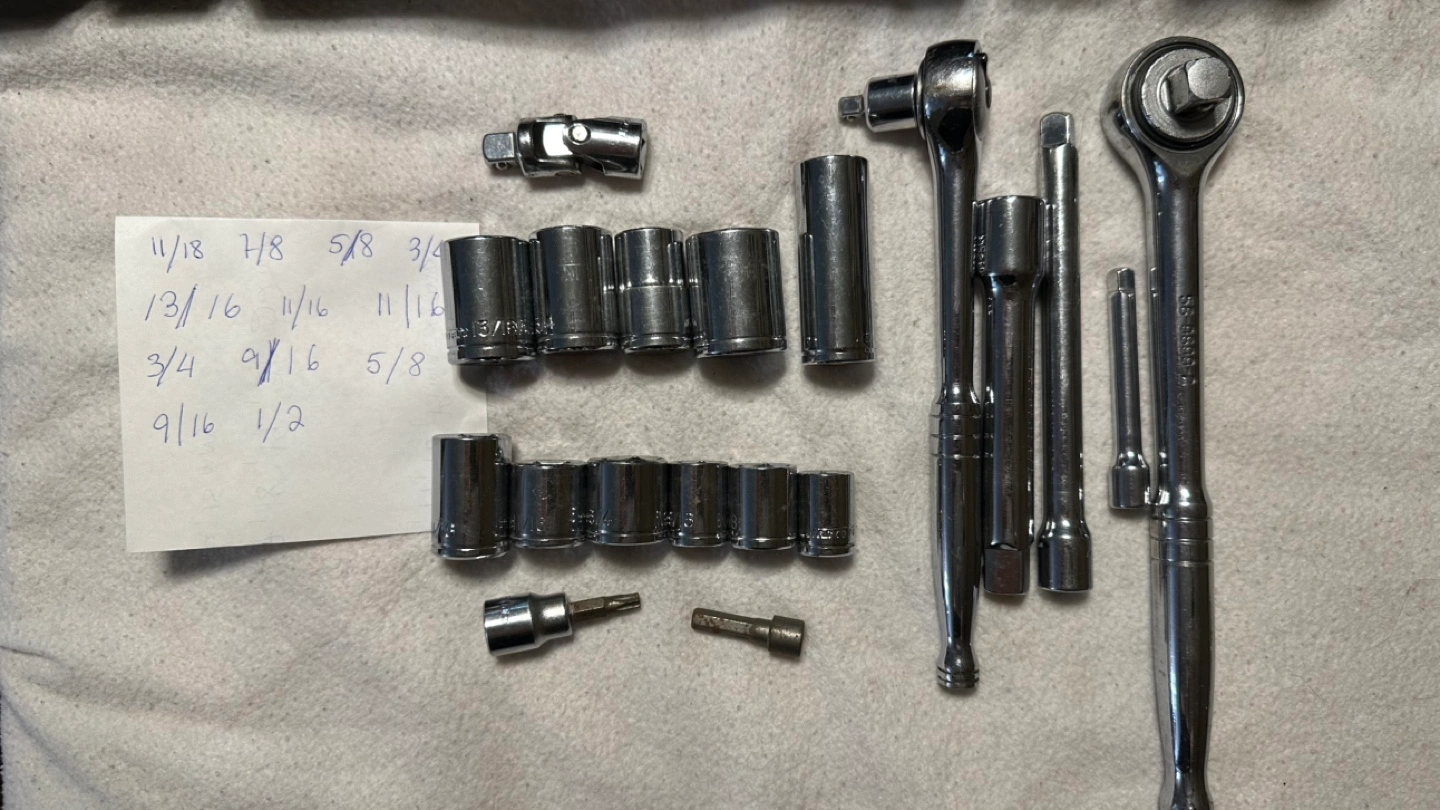 Large set of mechanic tools, including sockets, wrenches, and a ratchet. Includes various sizes and extension pieces. Missing some pics show what there is.