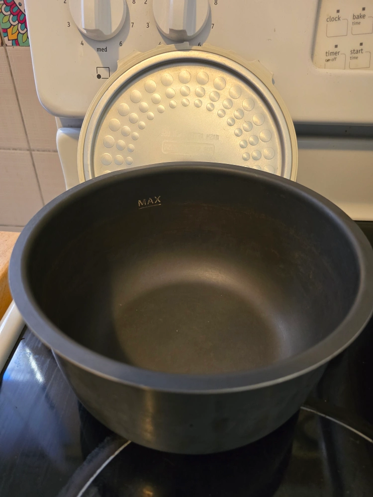 Rice cooker with multiple cooking settings. Includes a non-stick inner pot for rice and separate slow cooker pot for ease of use. easy clean.