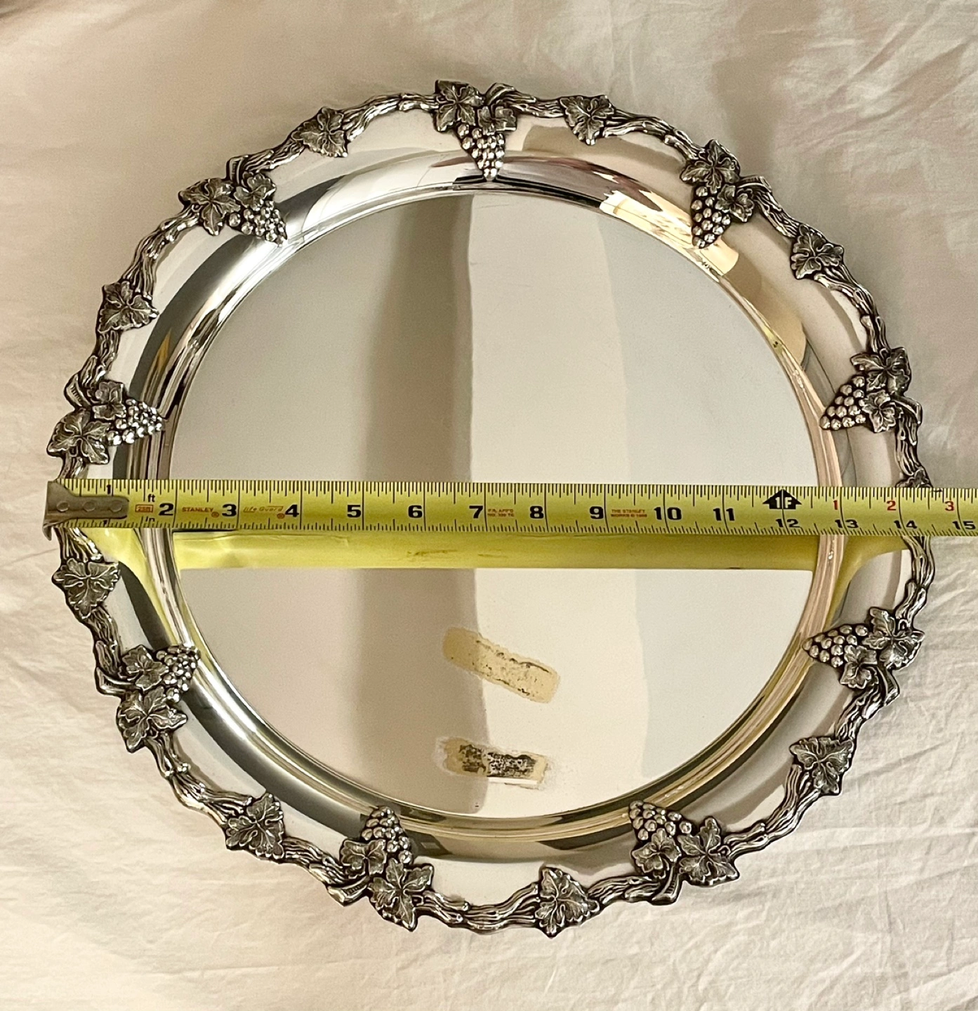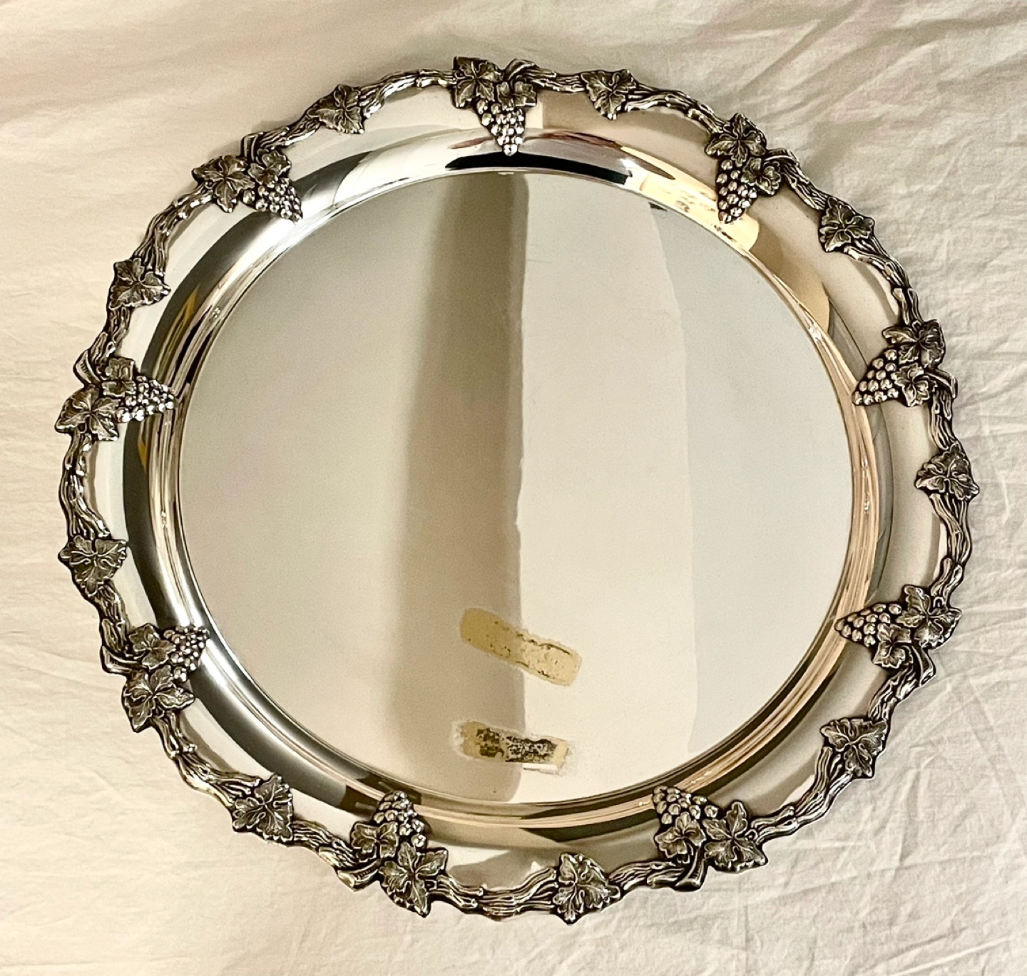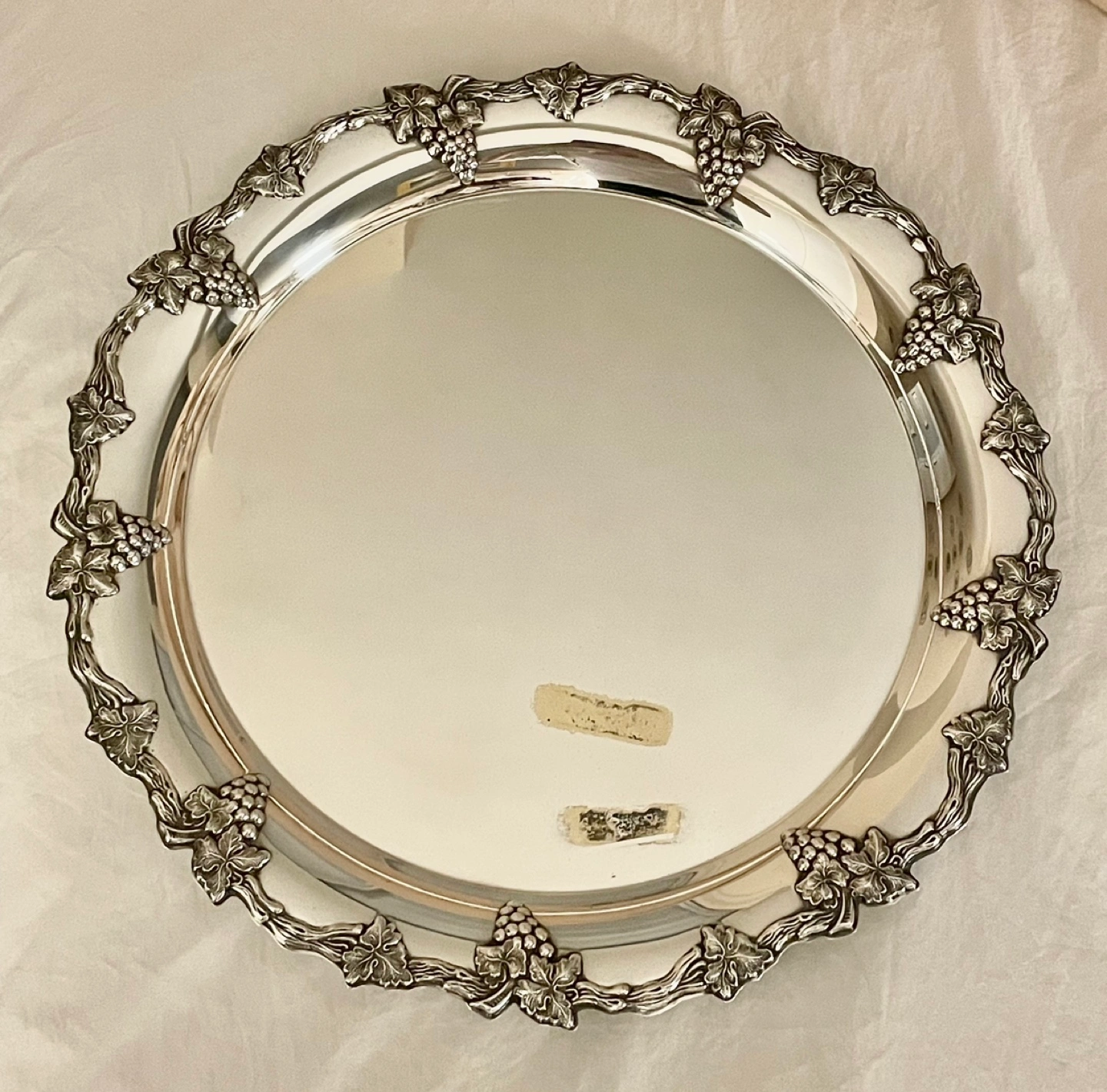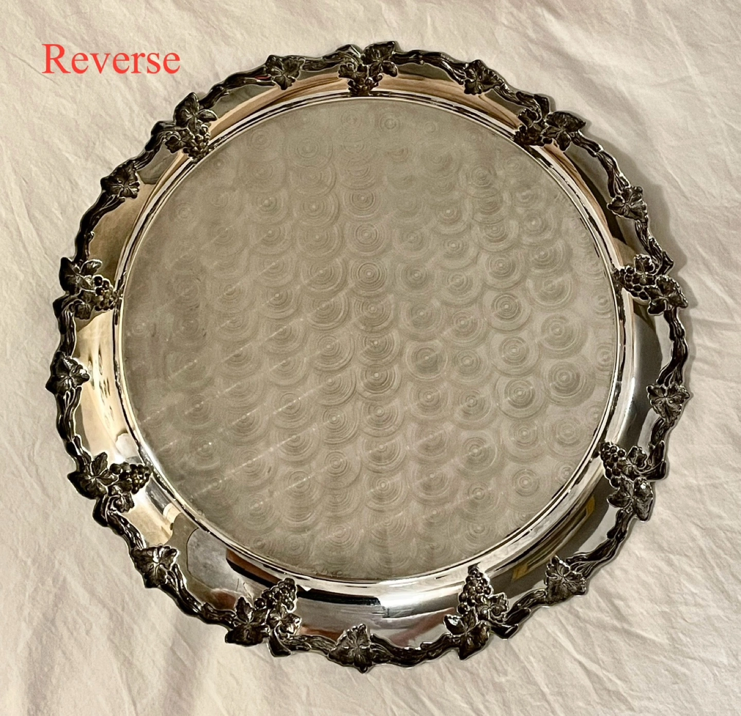 POLISHED SILVER PLATED ROUND HOLIDAY SERVING PLATTER