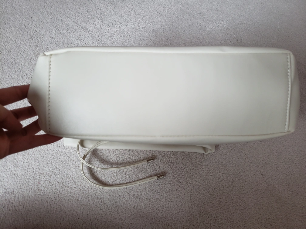 Selling an off-white shoulder bag with a long adjustable strap