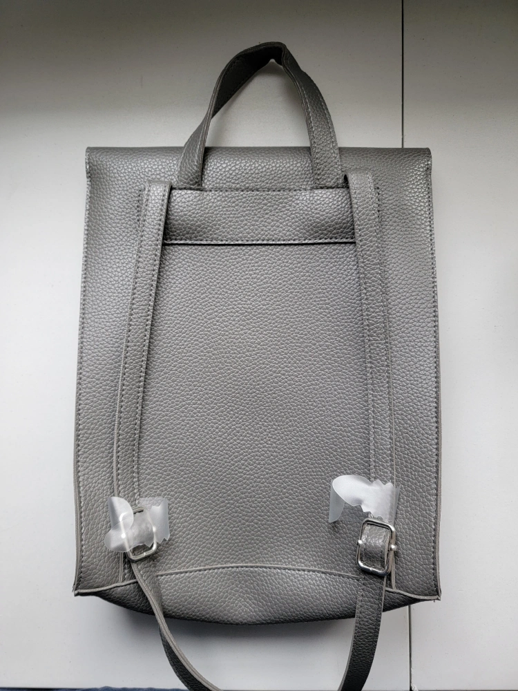 Grey Faux Leather Backpack