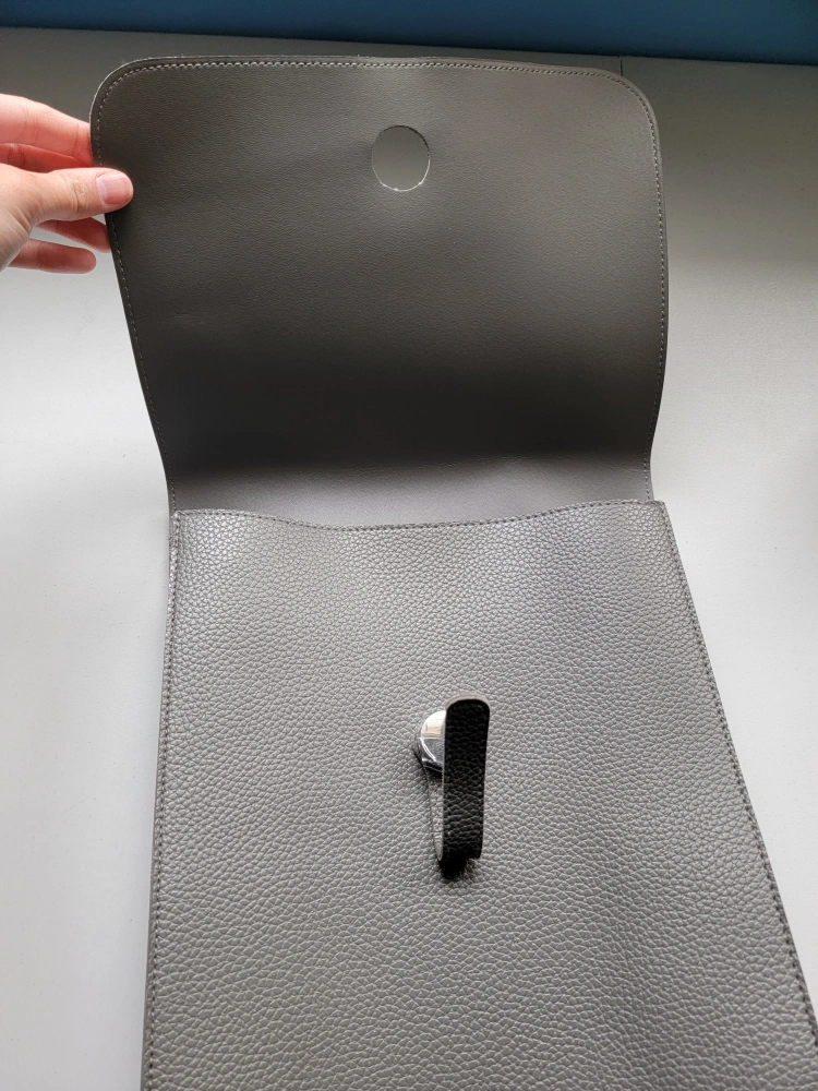 Brand new, never used. Faux leather-textured outside. Adjustable straps. Fastened enclosure. No pockets inside
