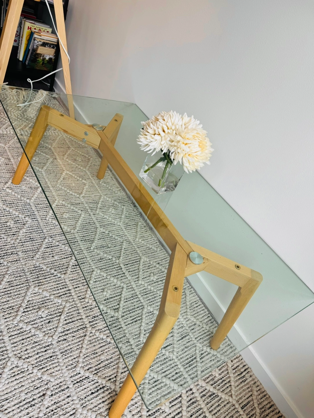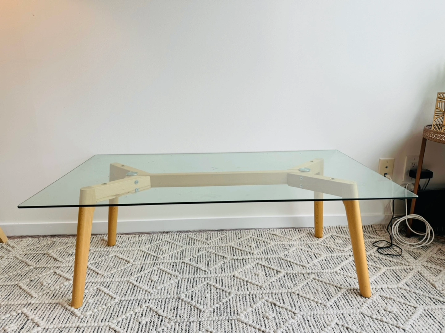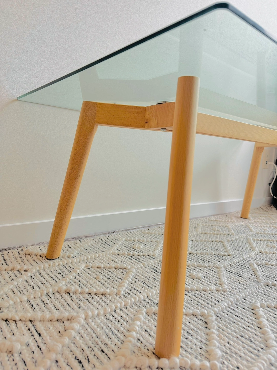 Minimalist Glass Coffee Table with Cedar Legs