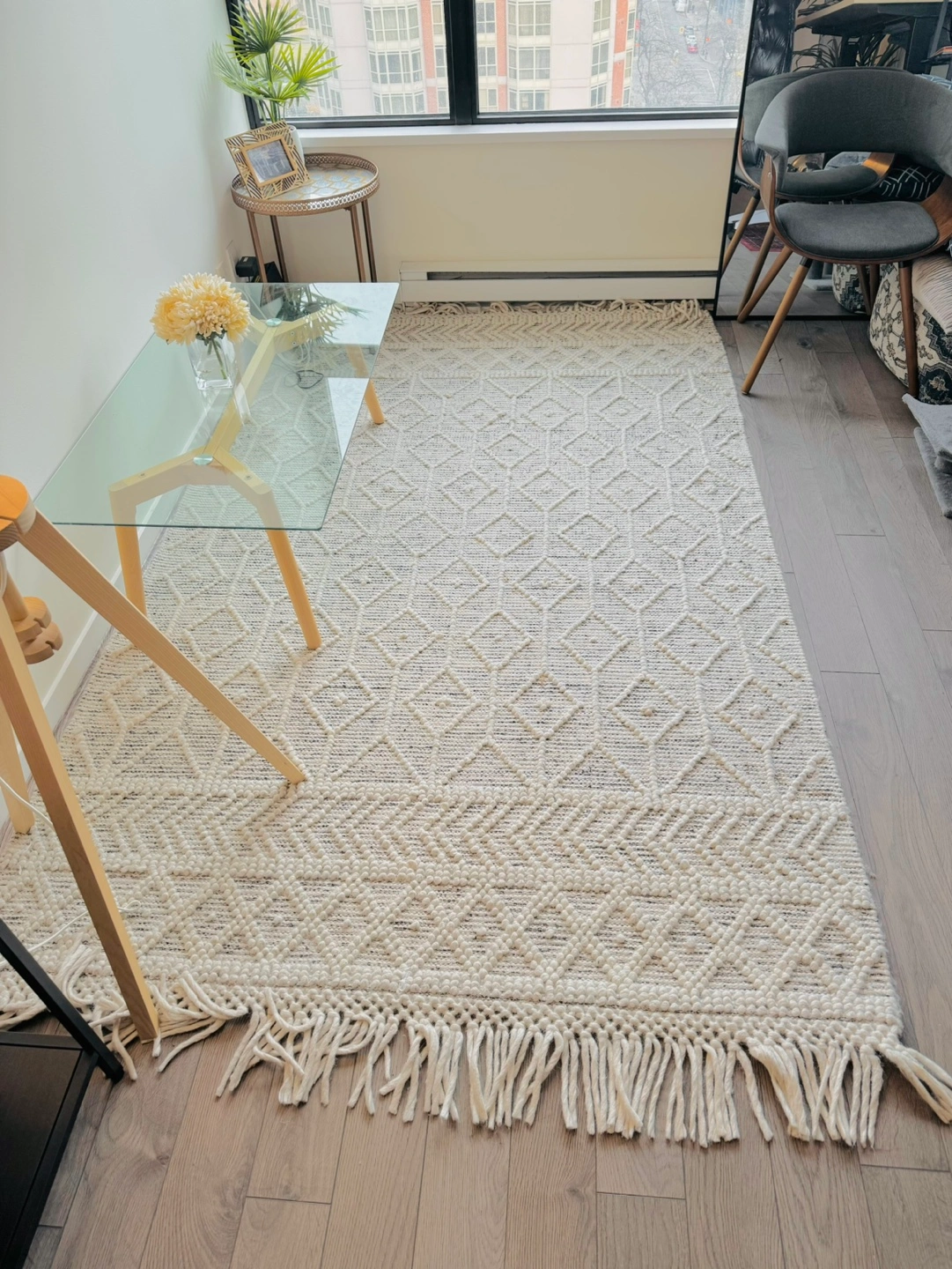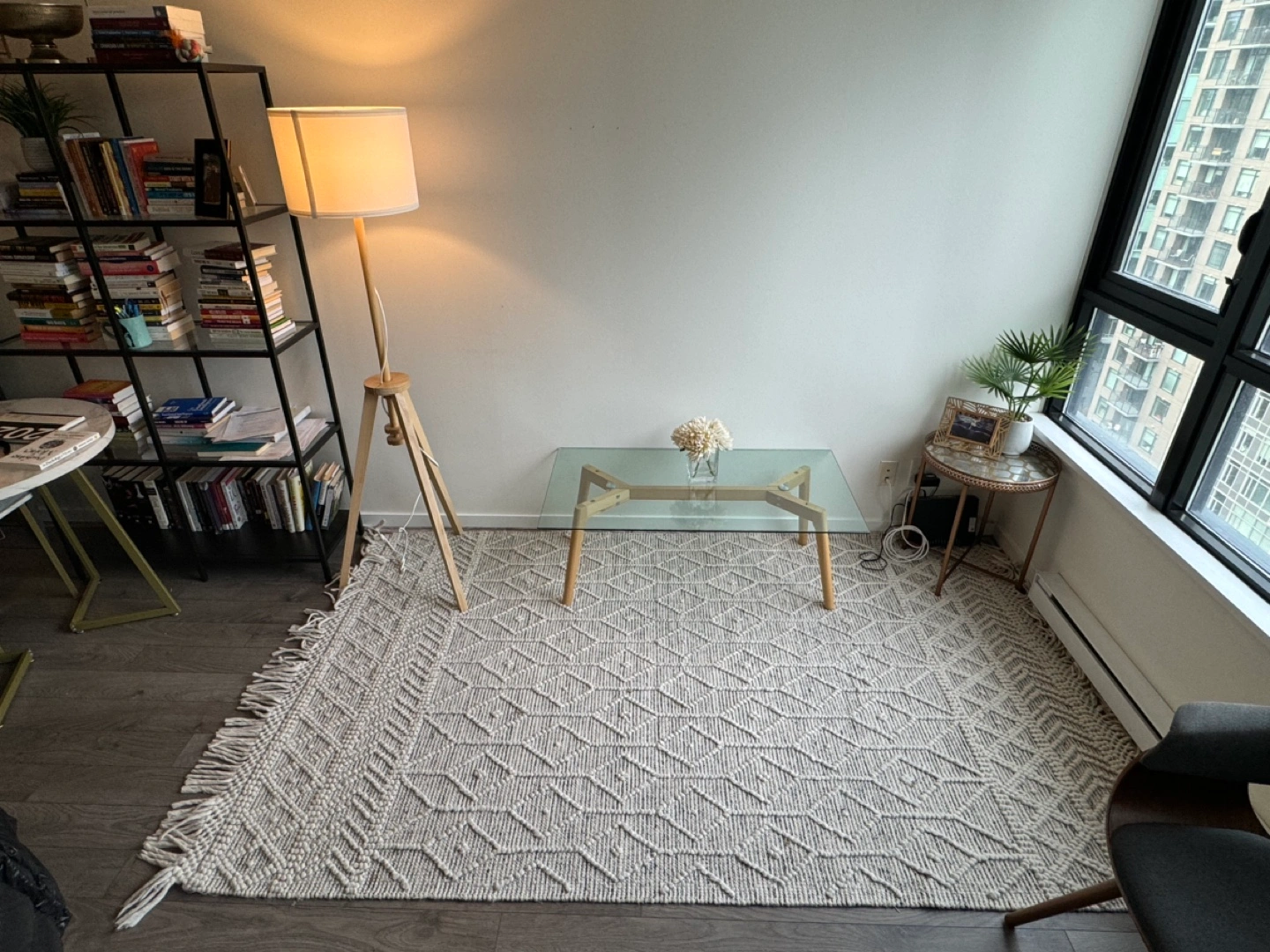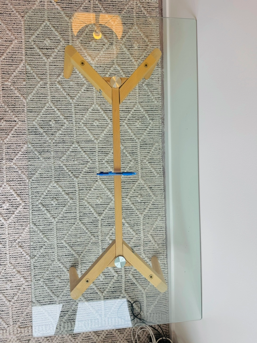 Minimalist Glass Coffee Table with Cedar Legs