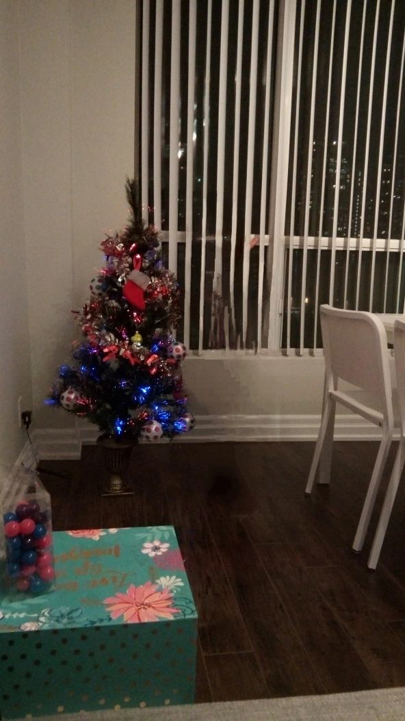 Colour changing fibre optic tree. Multi-coloured bulbs. 11 layers with 82 branch tips decorated with champagne glitter. Can be used in a covered outdoor space.