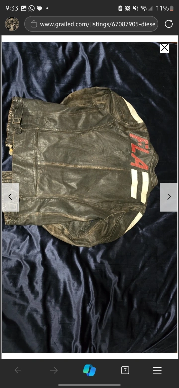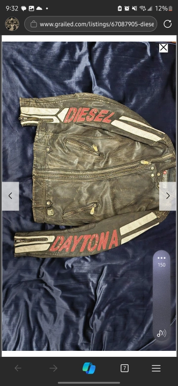 Diesel limited Leather jacket with white and red stripes on the sleeves and a 'Daytona' logo. It has a metal 'S.E.L.P. Protection' patch. in mint condition barely worn.