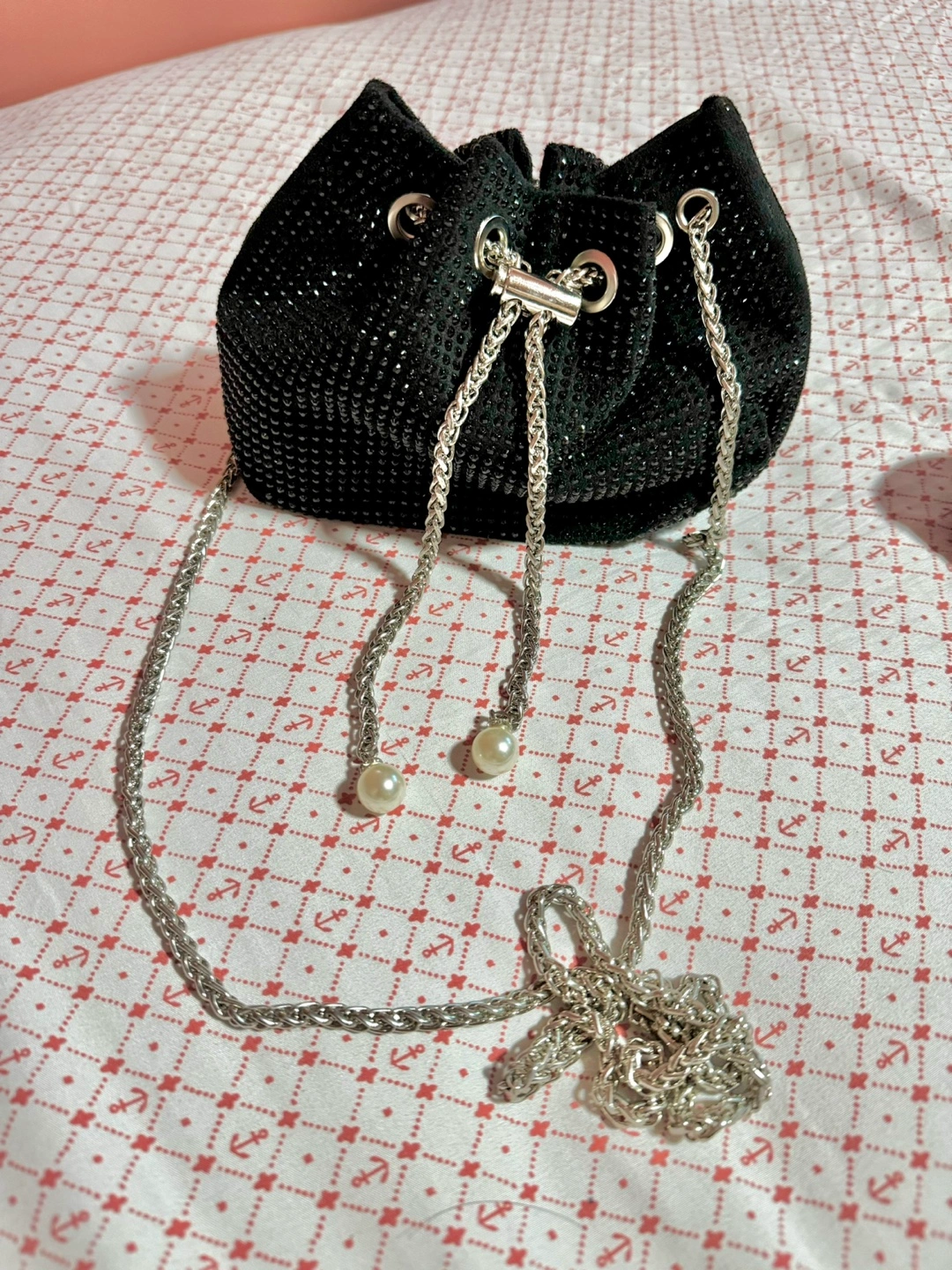 1 / 11 / 1Buy & SellBlack Rhinestone Evening BagBlack Rhinestone Evening Bag$20Black sparkly purse with a chain strap. Has a drawstring closure. Two white pearls on the chain strap. Excellent condition.WHERE TO MEETTD bank memorialView MapSELLERverifiedRoseSoutheast Calgary18212 reviews0 chats·3 favorites·61 viewsSEND CHAT TO SELLERHi Rose! I’m interested in your listing.Hi Rose! I’m interested in your listing.Get the Karrot app to chatSign In to chat