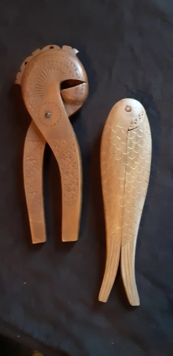 One shaped like fish and one with unique design (hand-carved in Yugoslavia)