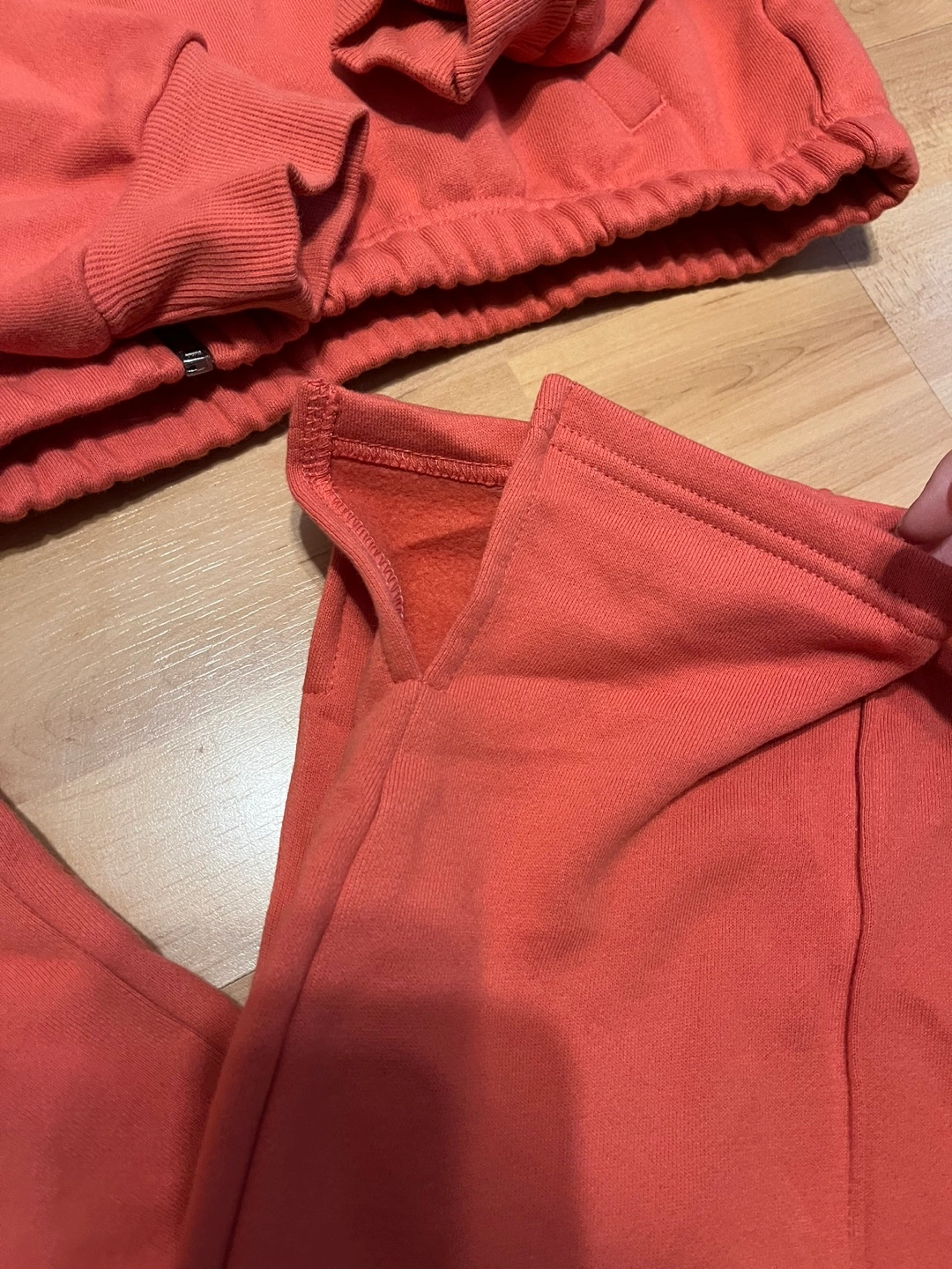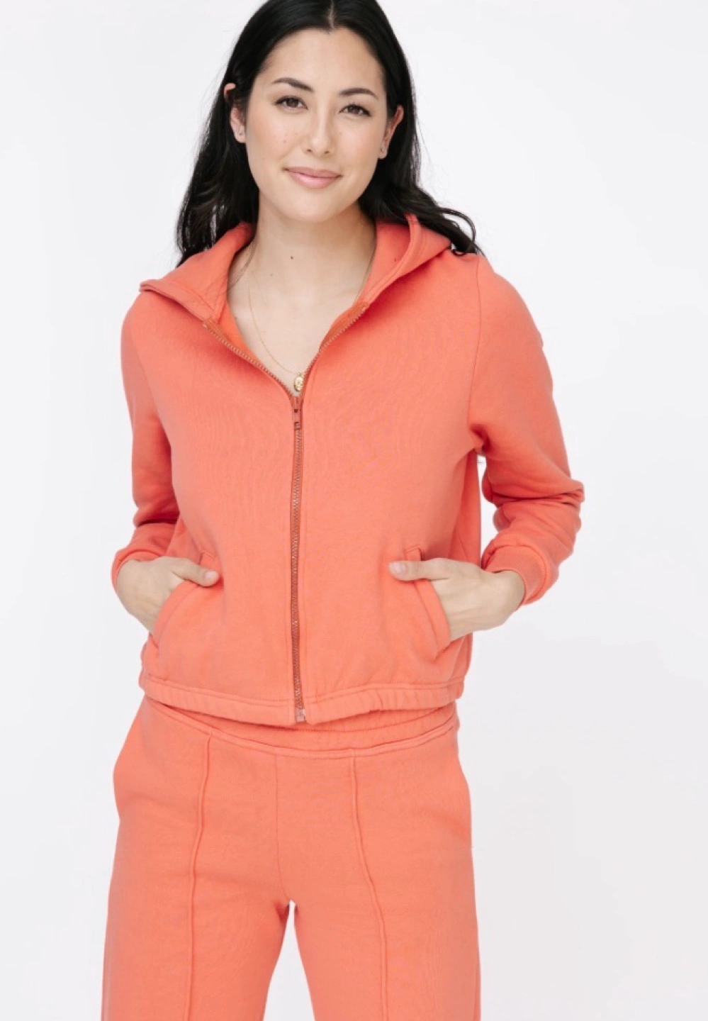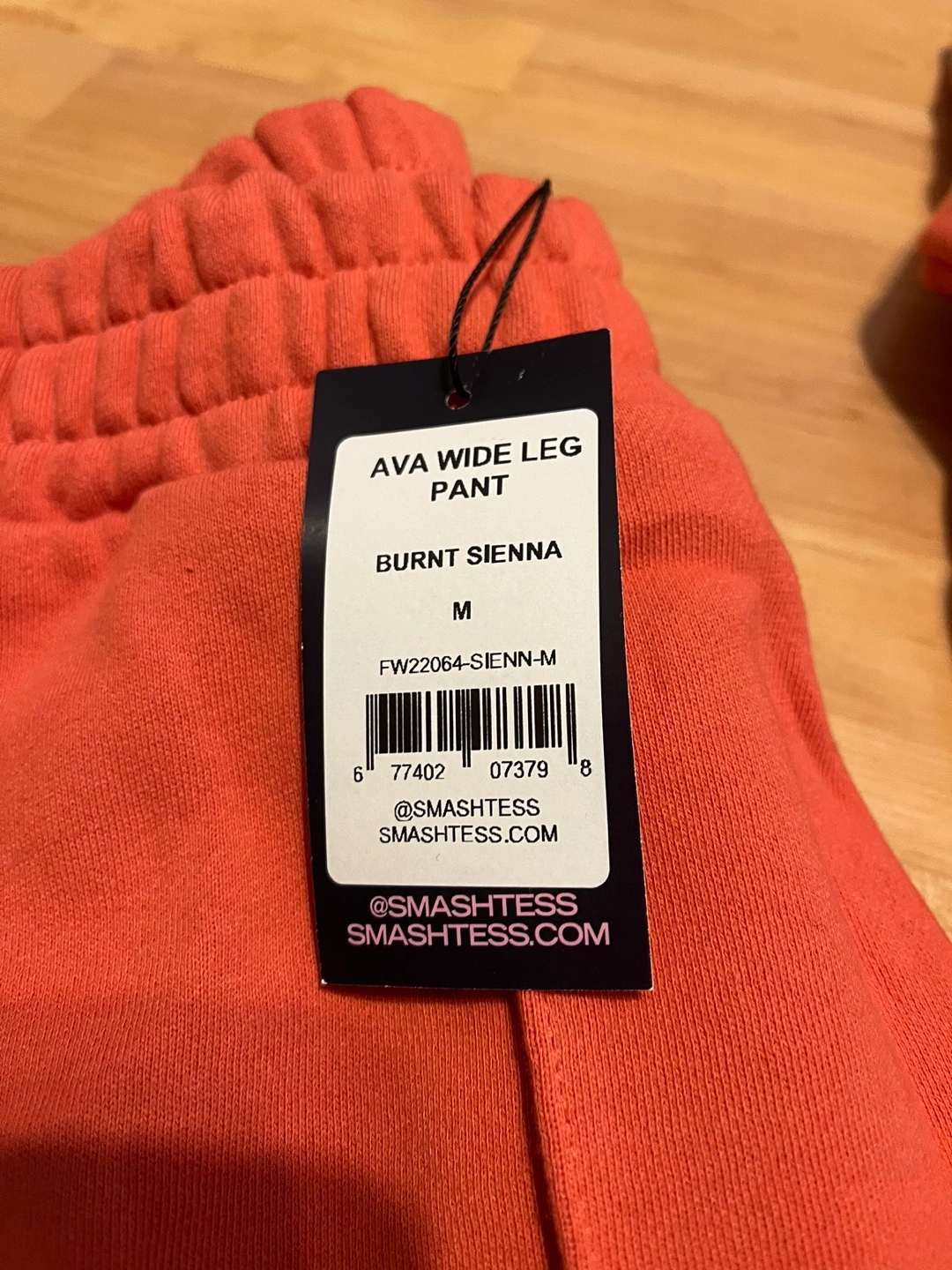 Size M. Burnt Sienna colour. Includes a hooded zip-up jacket and wide leg pants. New with tags. Retail is approx $180 for both pieces.
