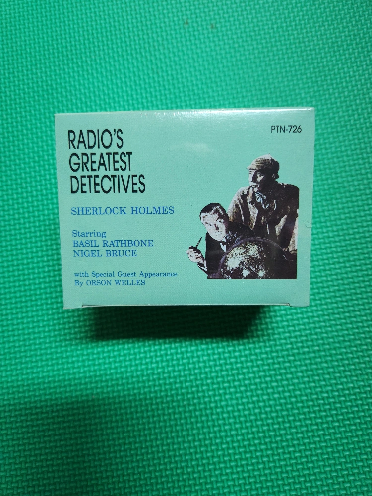 Cassette tape set featuring Basil Rathbone as Sherlock Holmes with a special guest appearance by Orson Welles. The set includes five tapes. Brand new shrink wrapped.