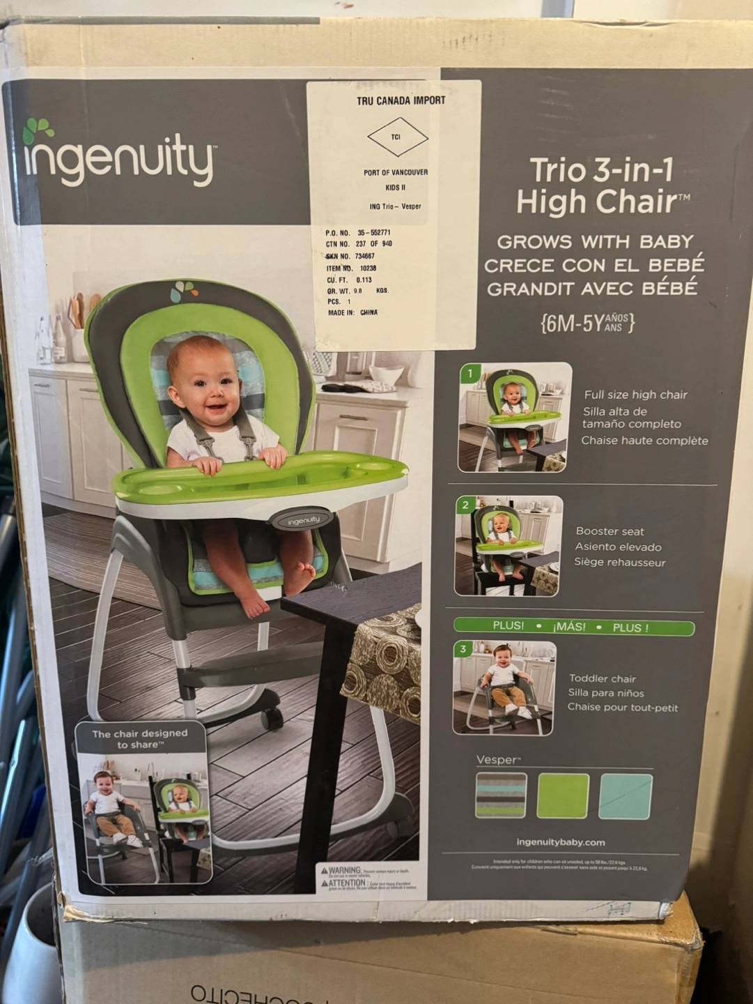 Buy & SellIngenuity Trio 3-in-1 High ChairIngenuity Trio 3-in-1 High Chair$50Grows with baby. Full size high chair, booster seat, and toddler chair.ConditionNewAge6 months-5 yearsWHERE TO MEETCheck LocationView MapSELLERYvonneNW Brampton33235 reviews0 chats·0 favorites·6 viewsSEND CHAT TO SELLERHi Yvonne! I’m interested in your listing.Hi Yvonne! I’m interested in your listing.Get the Karrot app to chatSign In to chat