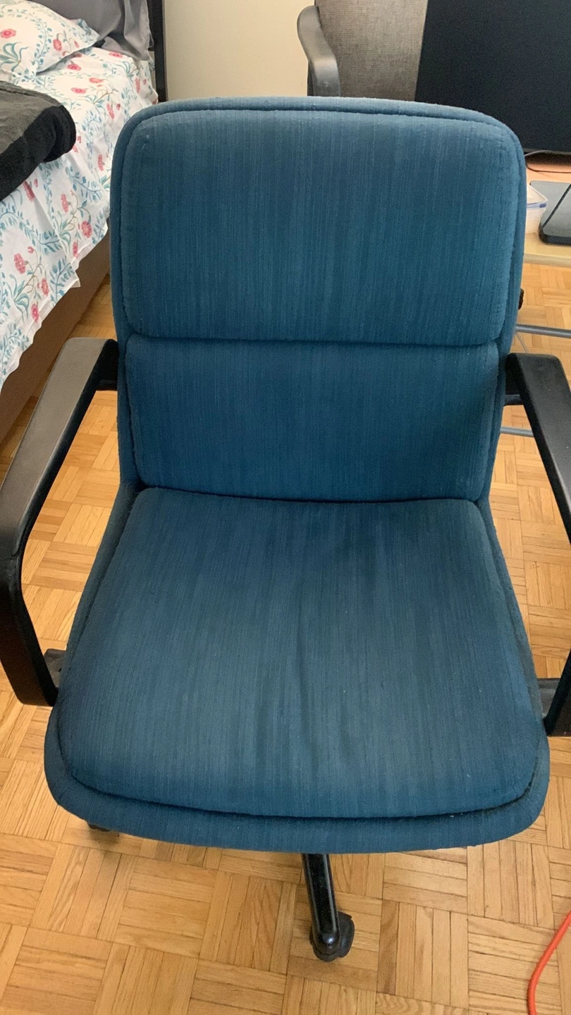 A no-frills work chair that’s seen its fair share of productivity! It needs some cleaning. Ideal for someone looking for a super affordable seating option. It’s quite used but still functional for day-to-day tasks as the wheels move fine. Perfect for temporary setups or a budget-friendly workspace.