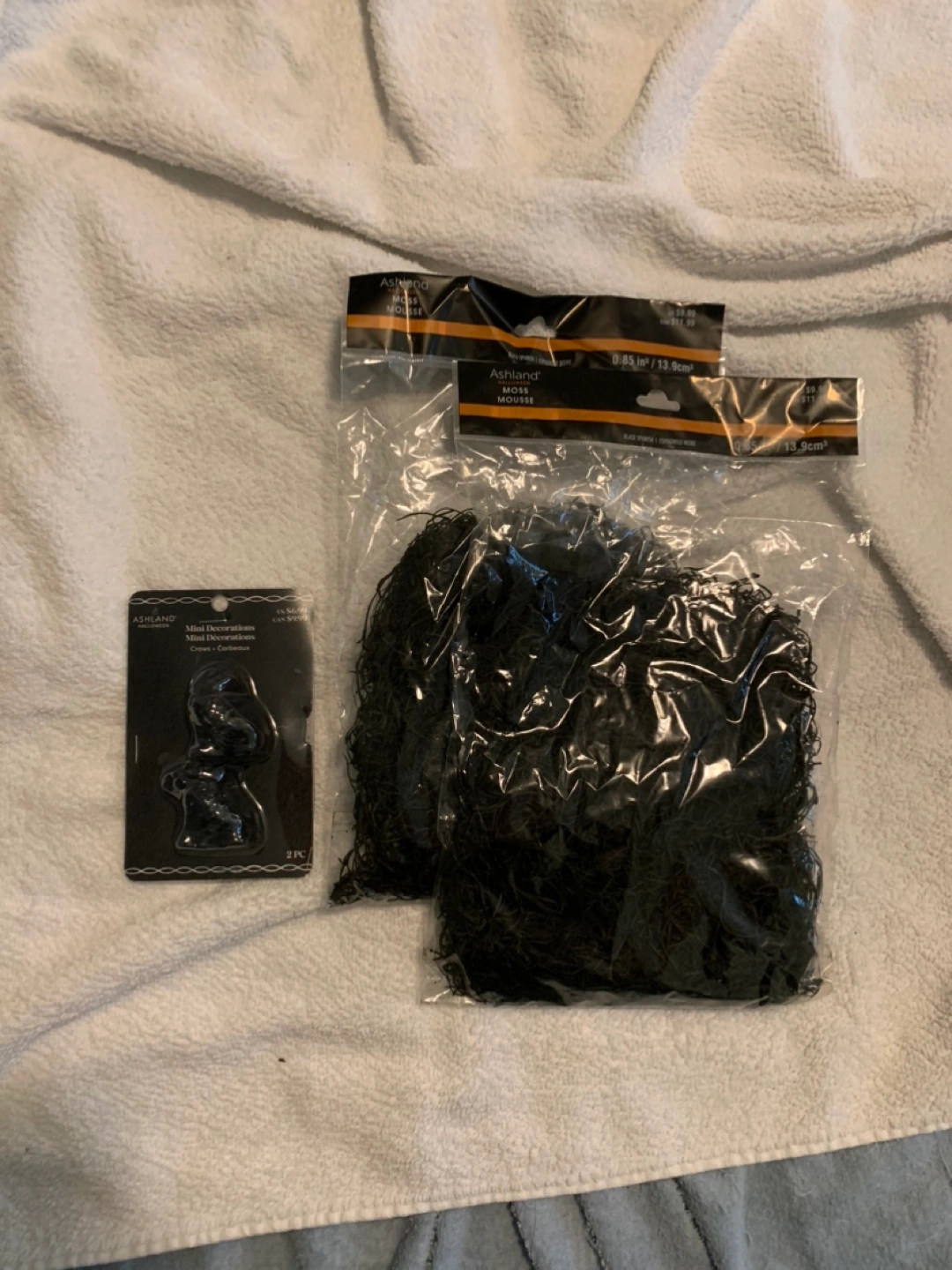 2 sparkly crows and 2 bags of FAKE black Spanish moss