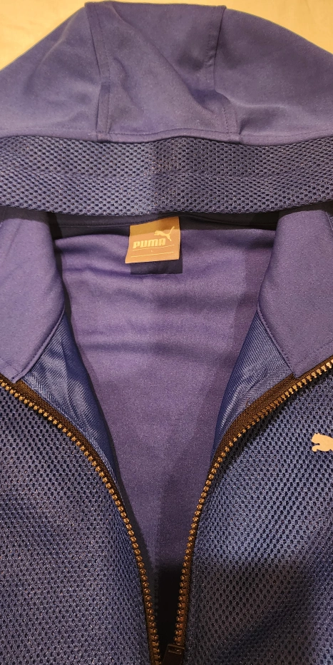 Blue hoodie with mesh panels. Full zip closure and two pockets.