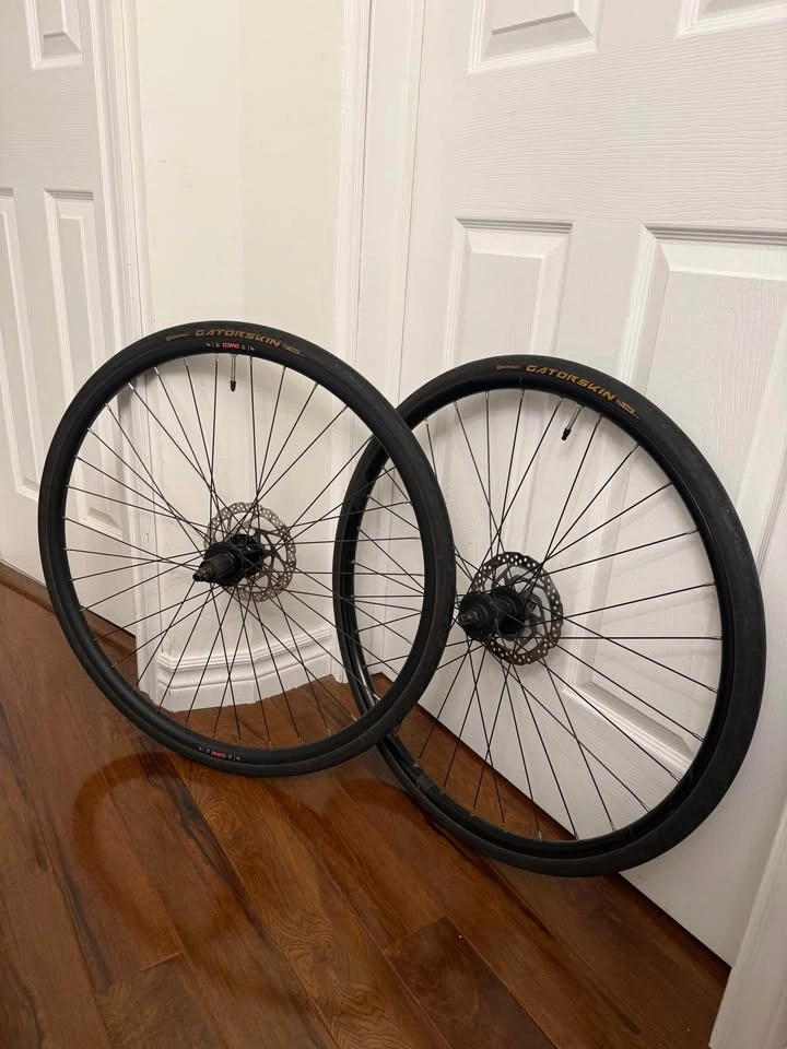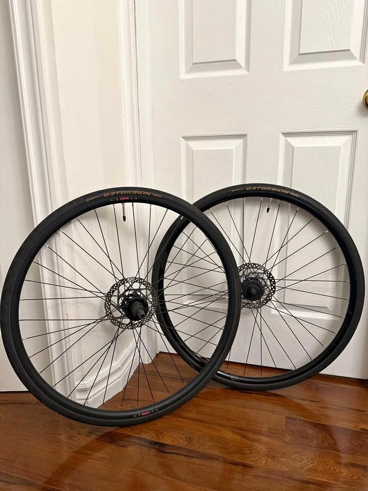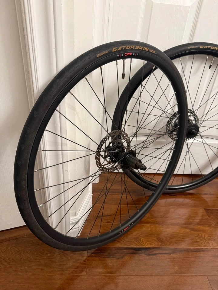 Rear wheel: Damco sealed bearings 135x10qr, disc brake rotor 6 bolt, tire Continental Gatorskin. Front wheel: Norco 110x10qr, disc brake rotor 6 bolt, tire Continental Gatorskin.