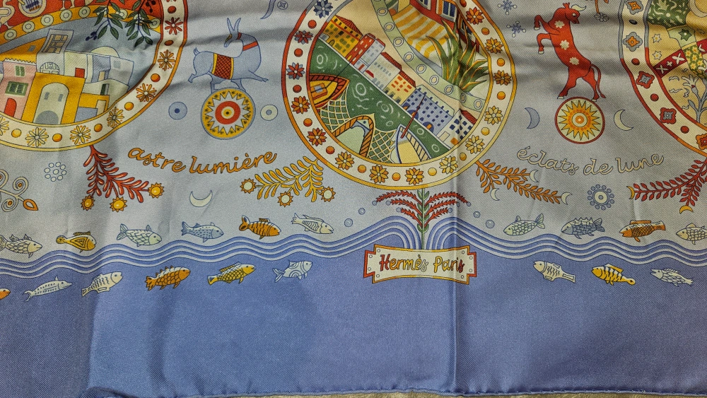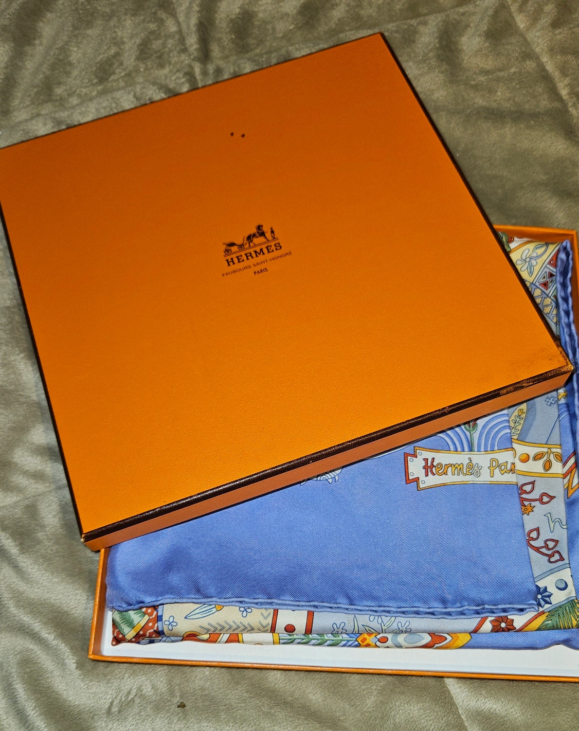 Hermès silk scarf Libre comme l'ange 1999. sought by collectors. Comes in a box.