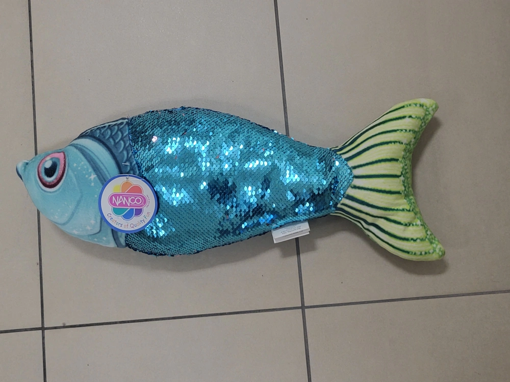 NANCO Fish Plush Toy with Sequins.Color Changing. New Gift Idea Brand New with tag. Size: 18x6x3 inches Features: Nanco Creators of Quality Fun Blue fish plush toy with sequins on both sides and a green tail. The sequins can be flipped to reveal a different color. Note: The original price is way more + Tax Here, Price is the lowest/firm to go away. Please call/ text for a faster response. 647 855 6217 NOTE: If u like, please see my other ad postings. like leather shoes, dress shirts, pants, jeans, Tennis/Squash Rackets, Exercise/Bike stuff, and more….. Mostly, brand name stuff. New or in the new condition to go away in about half price. Thanks for your time.